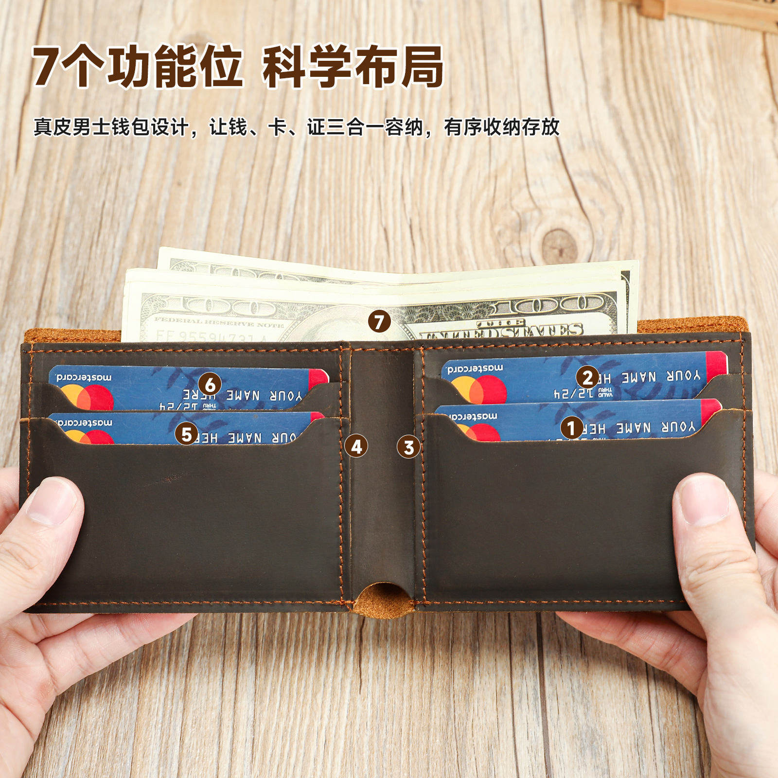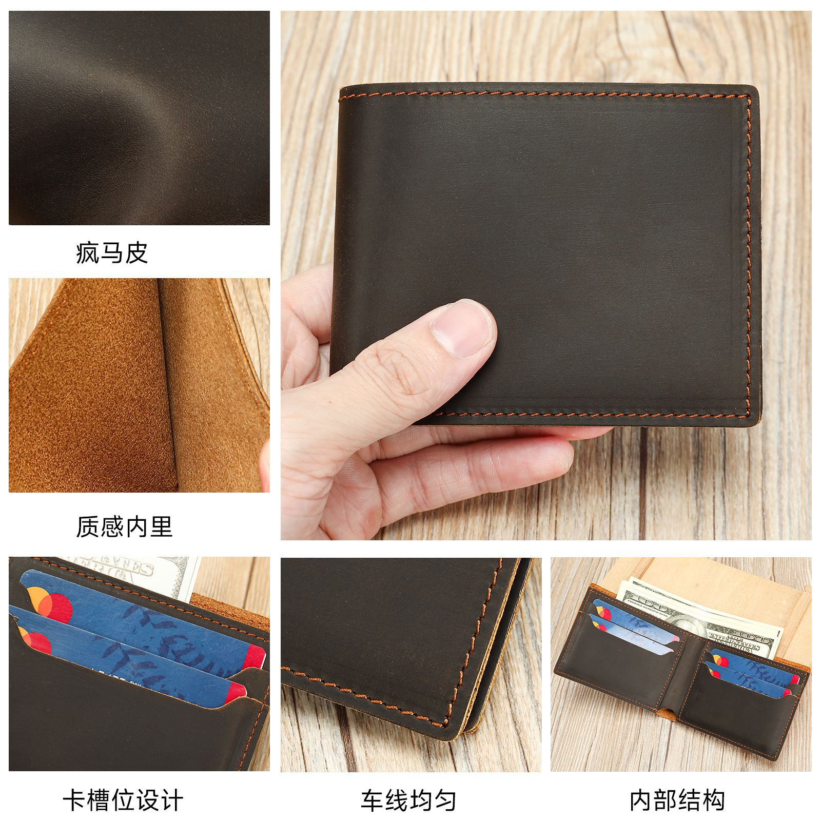 材质: 真皮 皮质特征: 头层牛皮 功能: 耐磨 里料质地: 牛皮 钱夹折数: 1折 品牌: MVA 图案: 纯色 风格: 复古腔调 货号: 1331 流行元素: 其他 颜色: 棕色,深咖 有可授权的自有品牌: 是 上市年份季节: 2025年秋季 尺寸: 11*1*9.5cm 适用场景: 日常搭配 重量: 0.15 kg/个