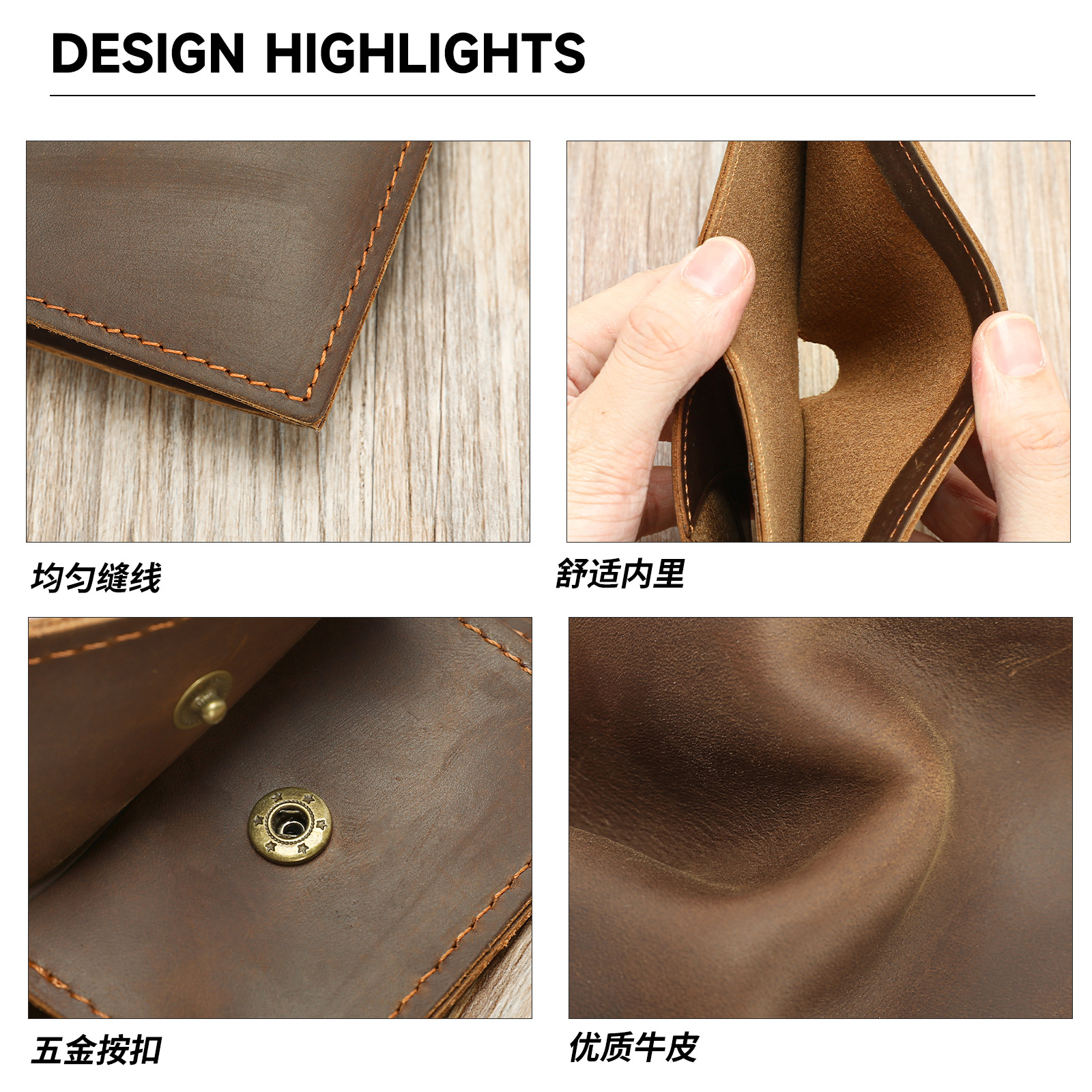 材质: 真皮 皮质特征: 头层牛皮 功能: 耐磨 里料质地: 牛皮 钱夹折数: 1折 品牌: MVA 图案: 纯色 风格: 商务精英 货号: 1273 流行元素: 车缝线 颜色: 咖啡,深咖 有可授权的自有品牌: 是 上市年份季节: 2025夏季 尺寸: 11*2.5*9.5cm 适用场景: 日常搭配 重量: 0.15 kg/个