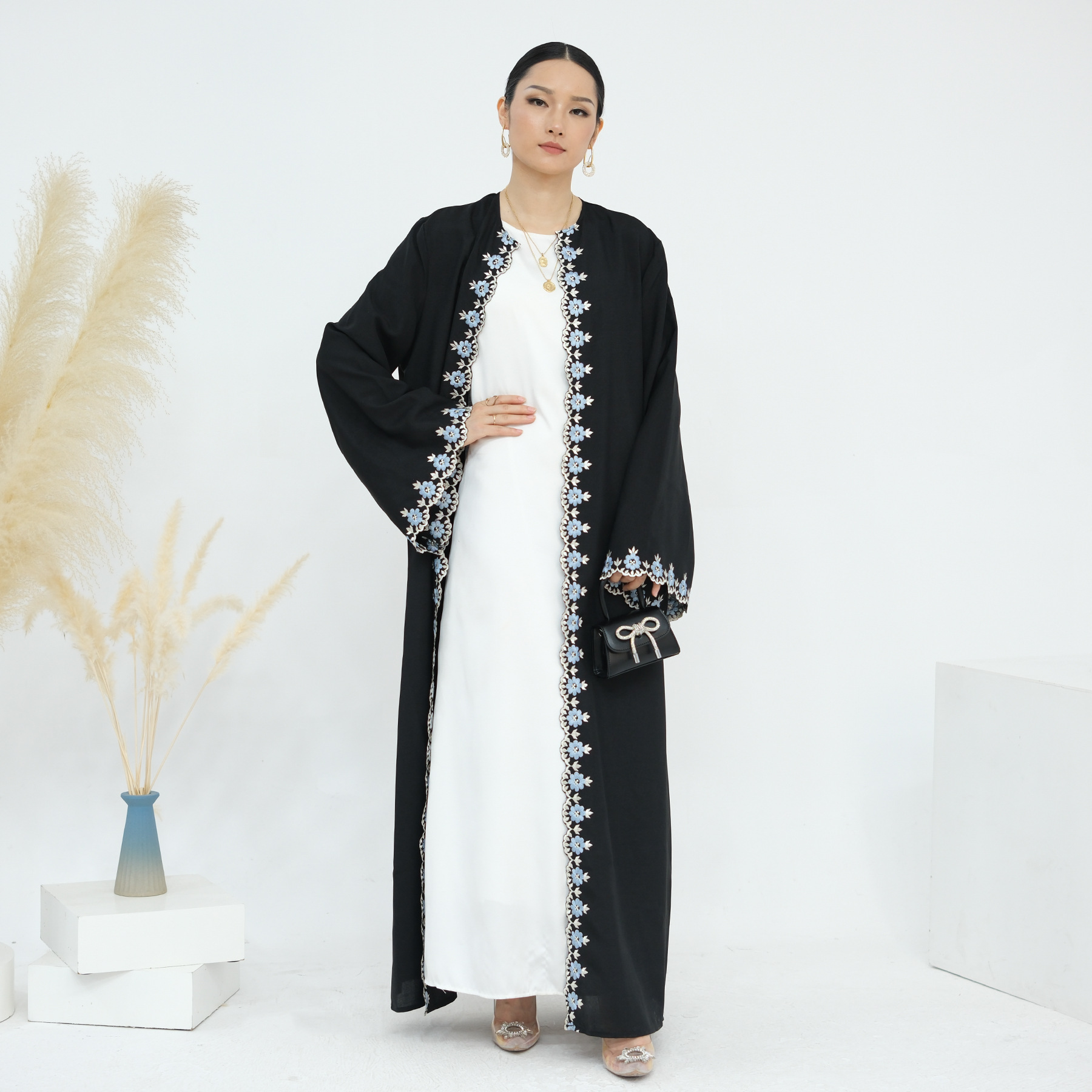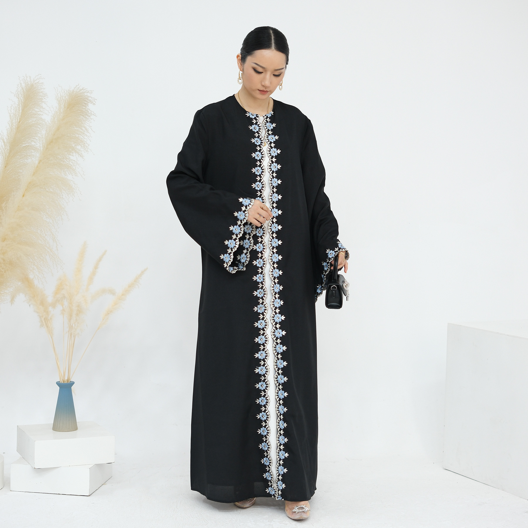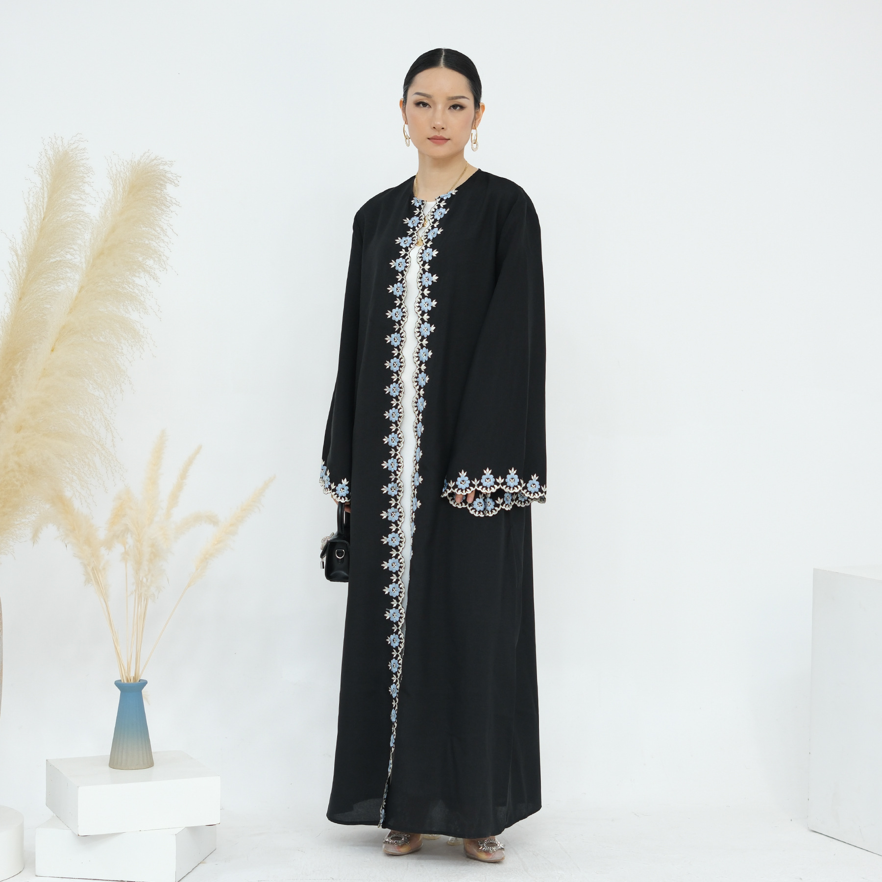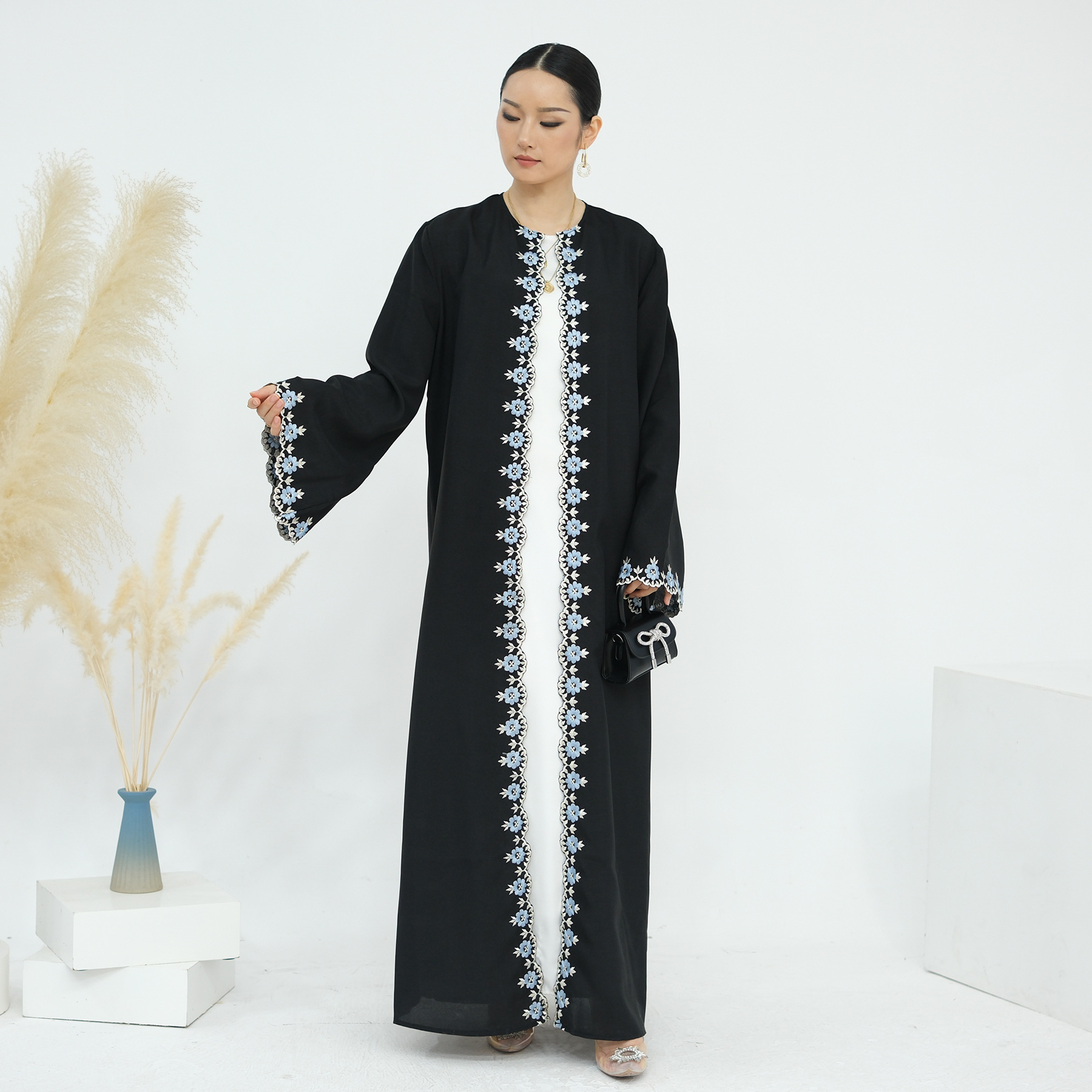 2024Loriya速卖通亚马逊迪拜花朵刺绣开衫长袍LR909