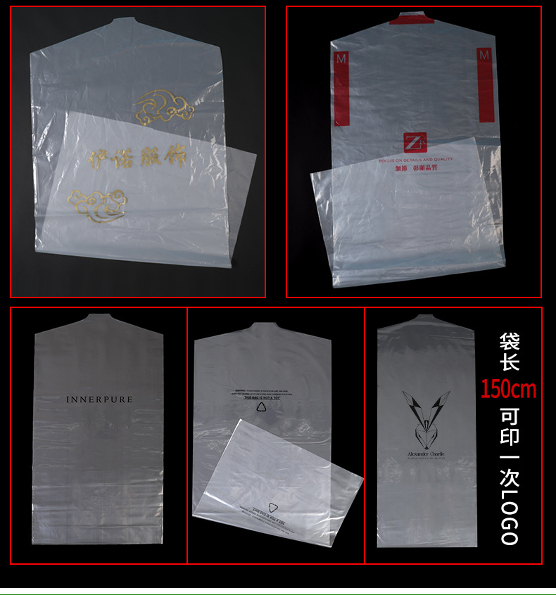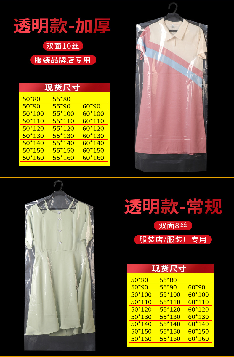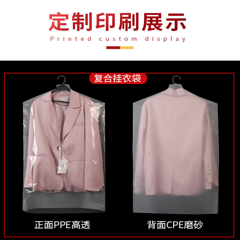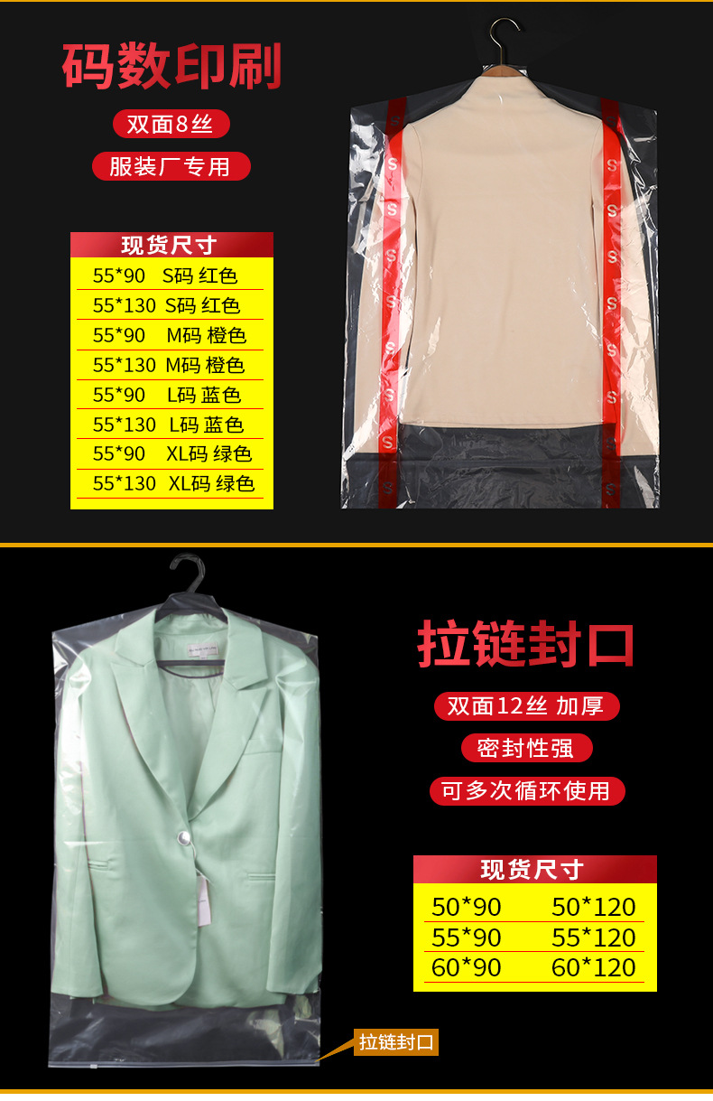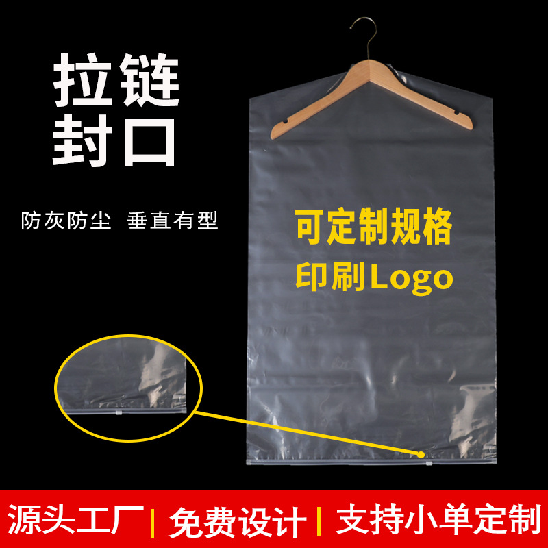 定制logo塑料防尘挂衣袋 西装大衣袋防尘套 pe透明服装拉链防尘袋