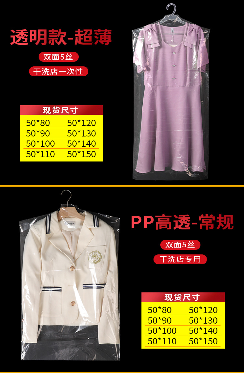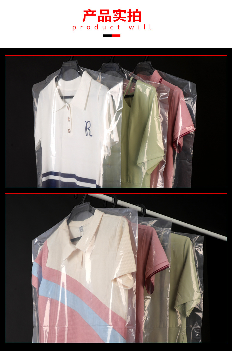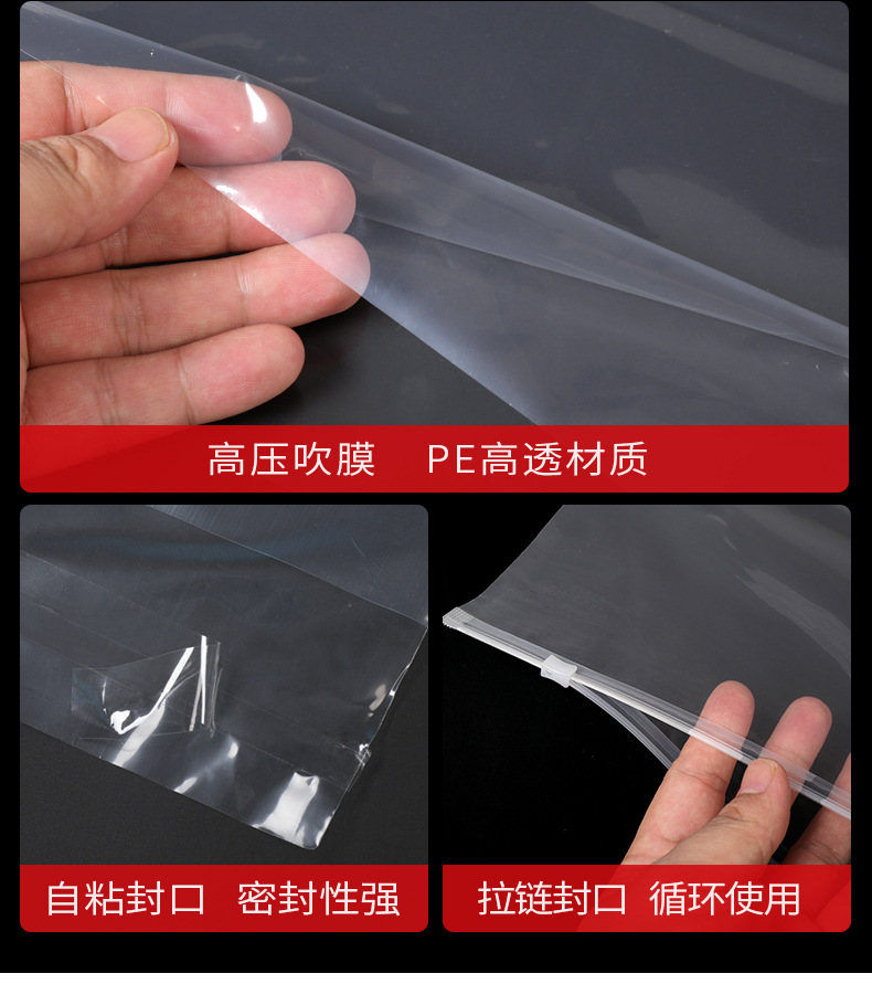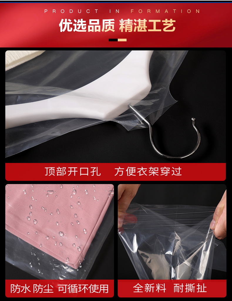 定制logo塑料防尘挂衣袋 西装大衣袋防尘套 pe透明服装拉链防尘袋