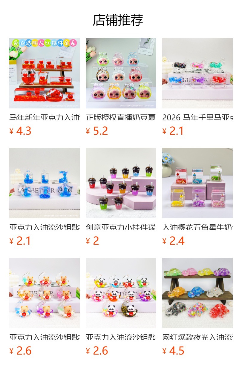 我们专注生产亚克力流沙瓶钥匙扣、摆件、挂件二十余年,累计服务超2万买家,年产能可超1000万件!