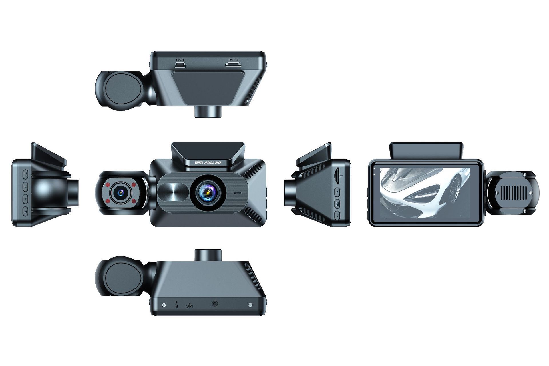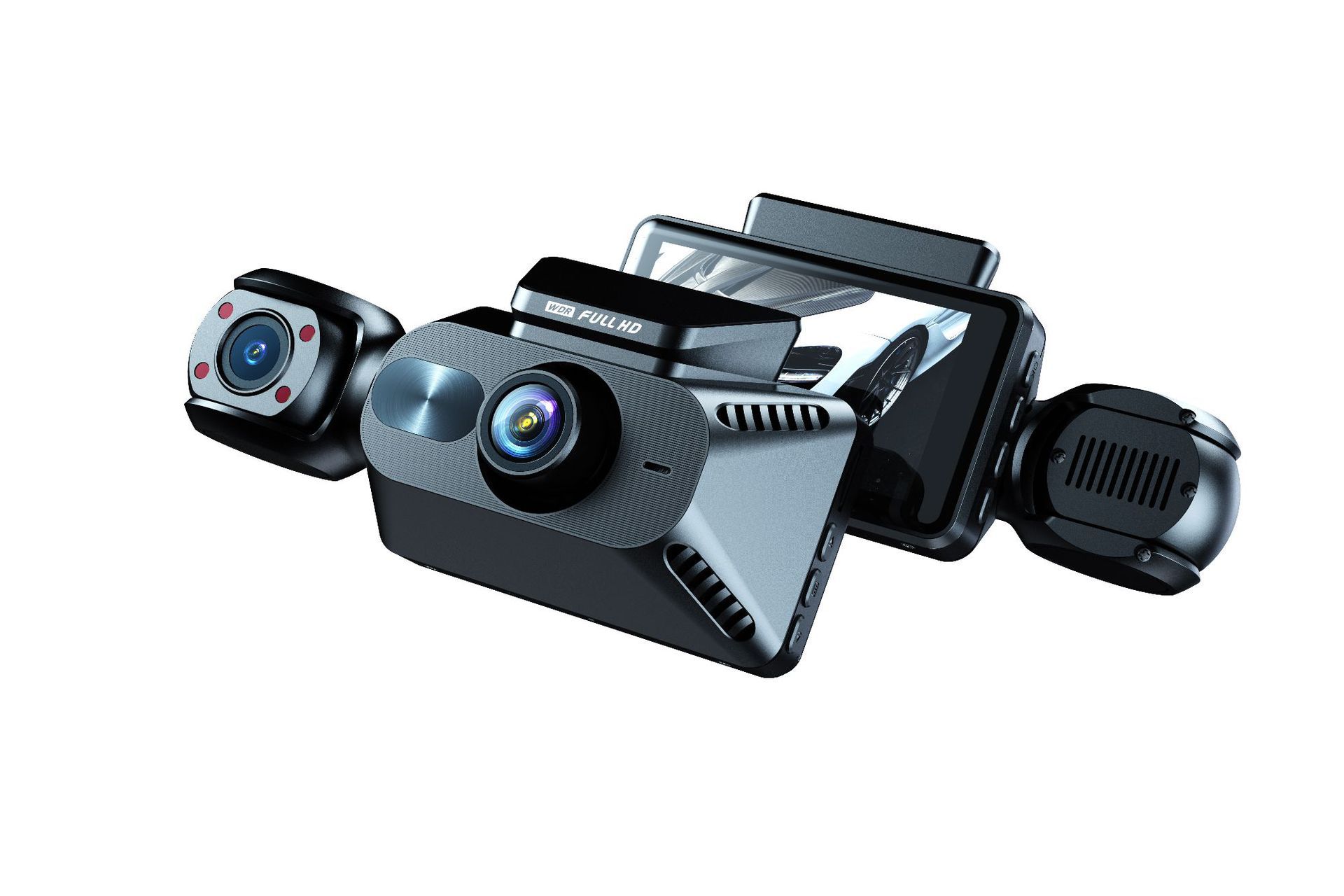 功能: 移动侦测 影像分辨率: 1080p 内存容量: 无 拍摄角度: 170° 拍照像素: 100万 储存卡: TF卡 镜头数量: 前后三录 品牌: 中性 数据存储时间: 循环录像 数据传输接口: USB/HDMI 重量: 0.1 kg/套