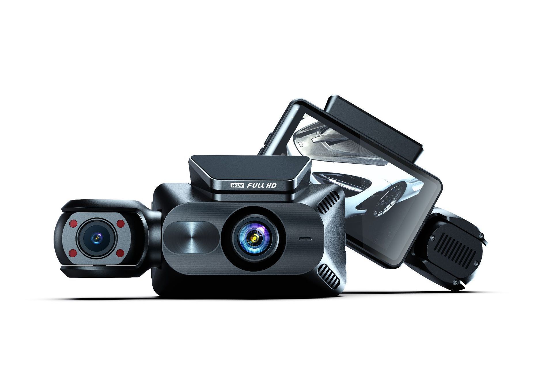 行车记录仪高清3寸倒车影像WiFi三镜头录像超广角夜视三录记录仪