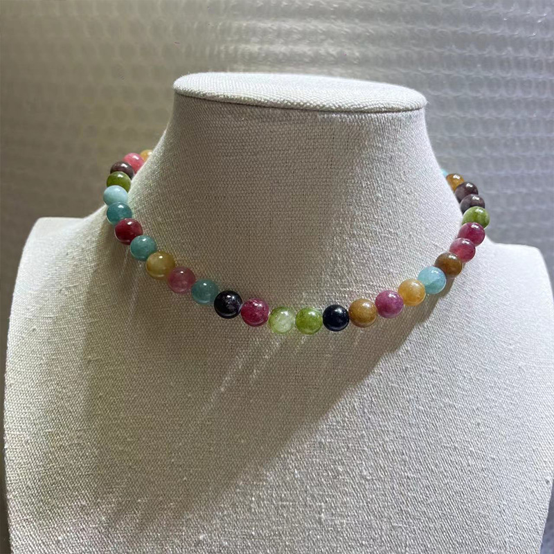 碧玺项链多巴胺糖果色手工串珠新中式小众设计轻奢国风锁骨链项饰