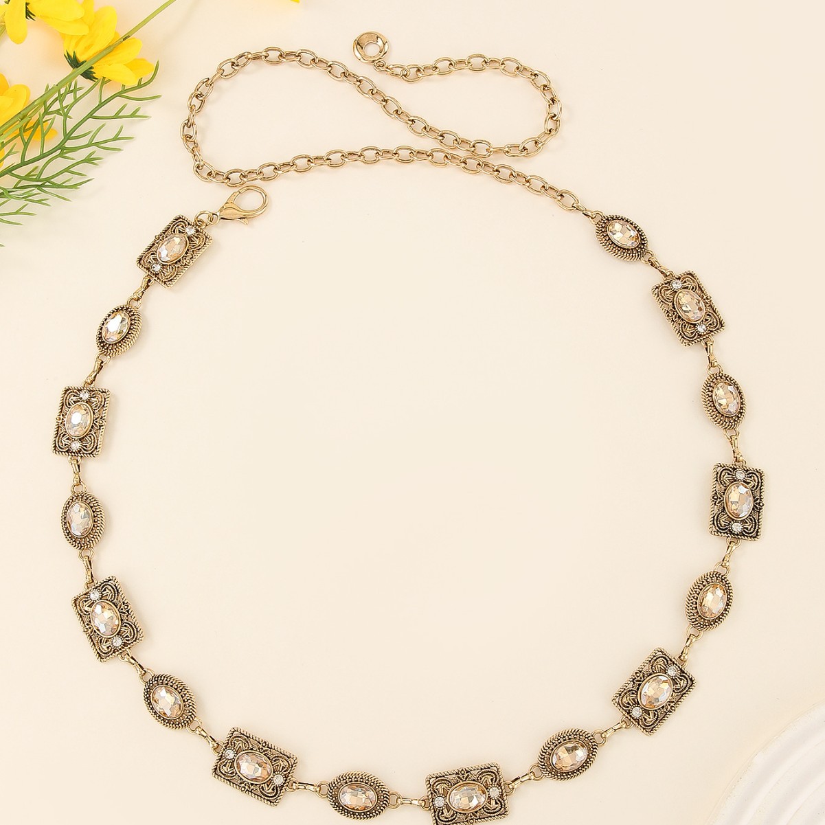 跨境金属拼接腰链女复古时尚百搭宝石腰饰连衣裙腰带腰链配饰批发 English | 投诉
