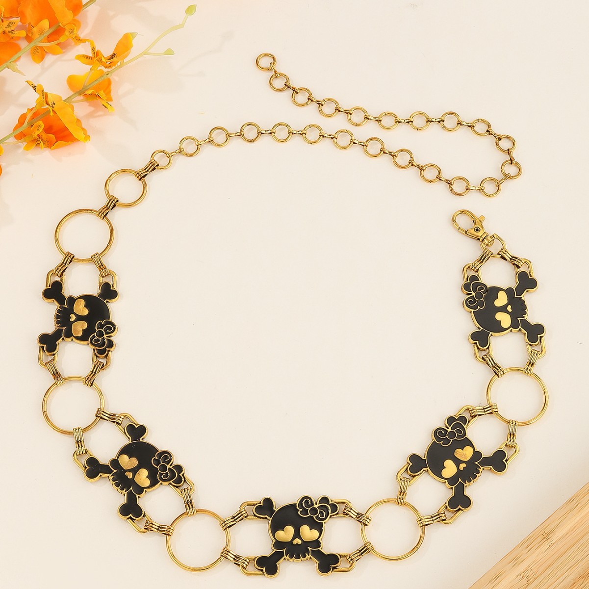 跨境新款金属腰饰配件百搭连衣裙时尚骷髅头造型挂钩腰链厂家批发 English | 投诉