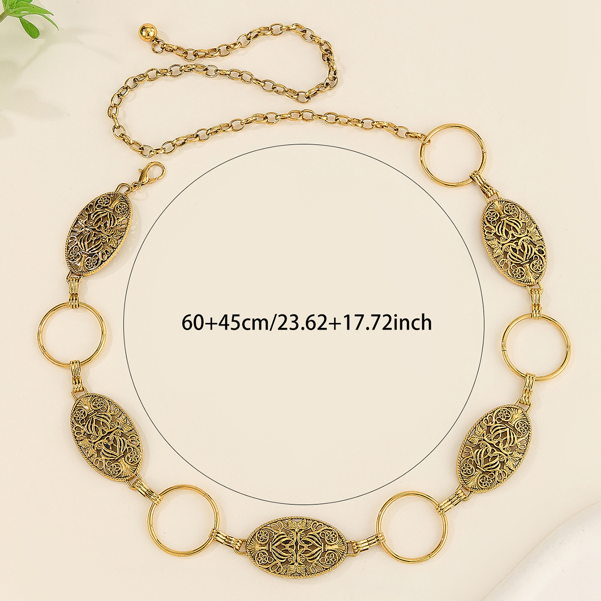跨境新款椭圆圆环复古镂空设计腰带时尚金属礼服腰链服饰装饰配件 English | 投诉