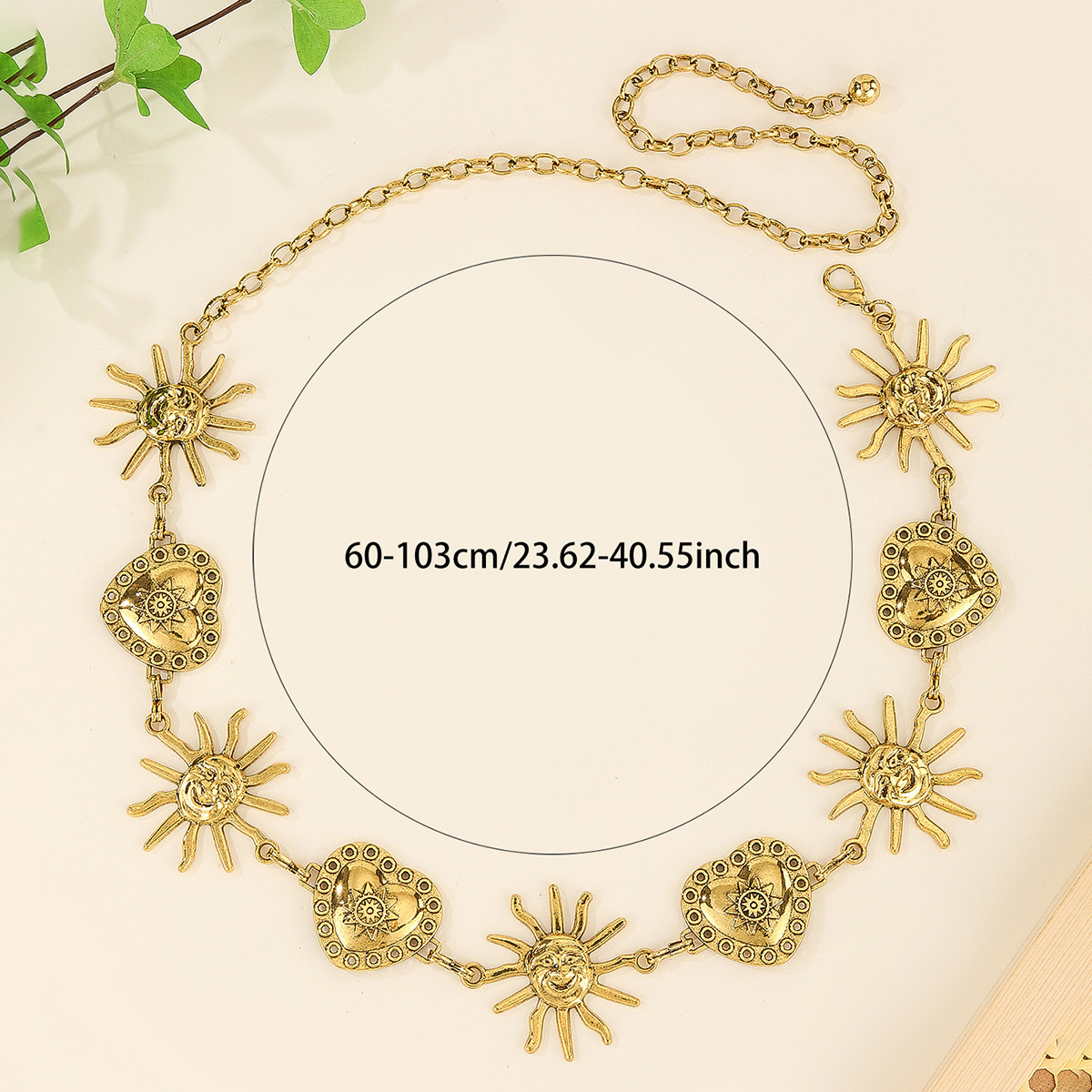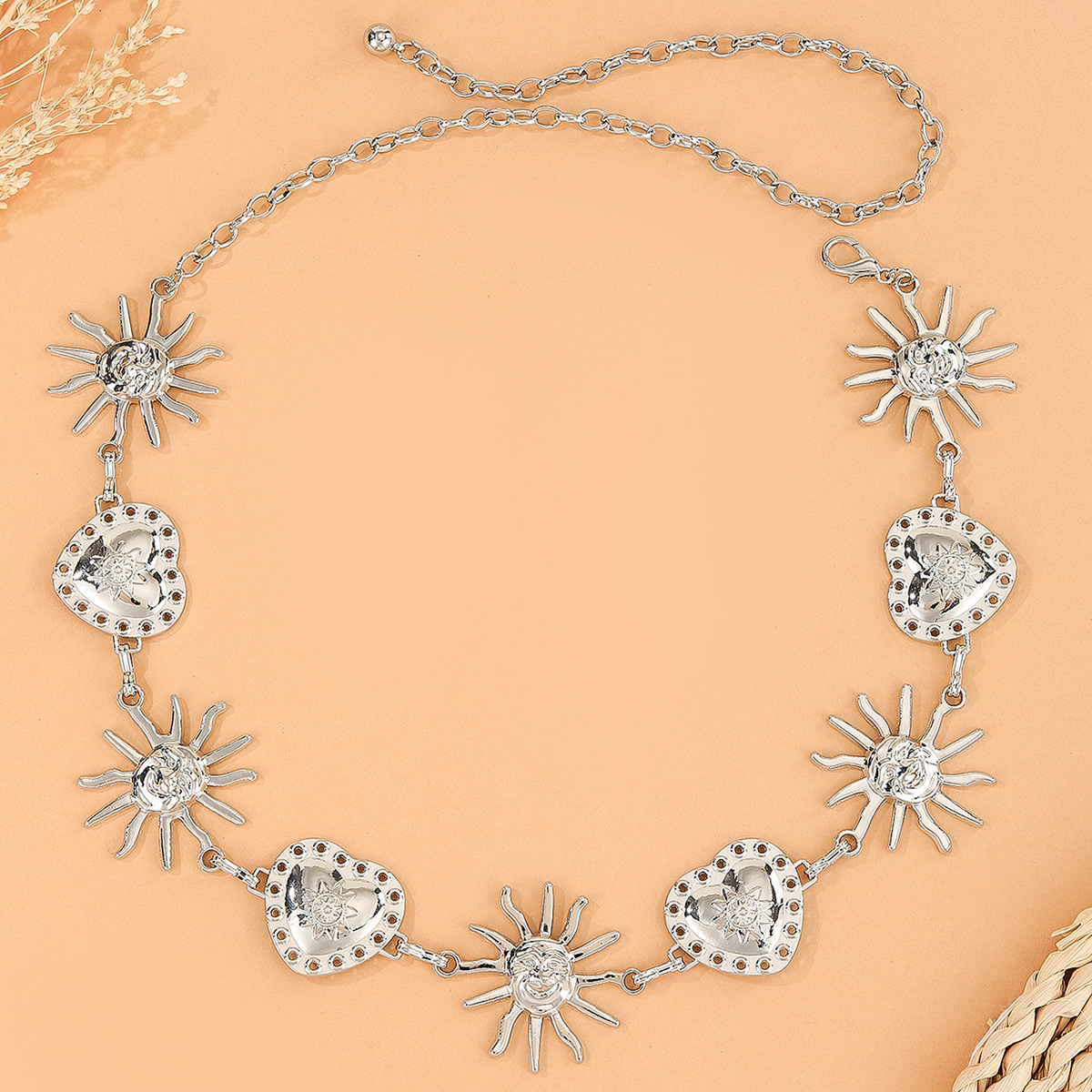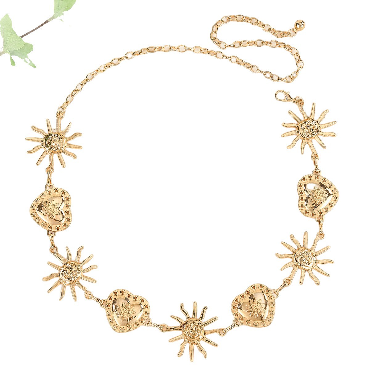 太阳爱心相连金属腰链女装饰配连衣裙 ins风潮流百搭链条腰部配饰 English | 投诉