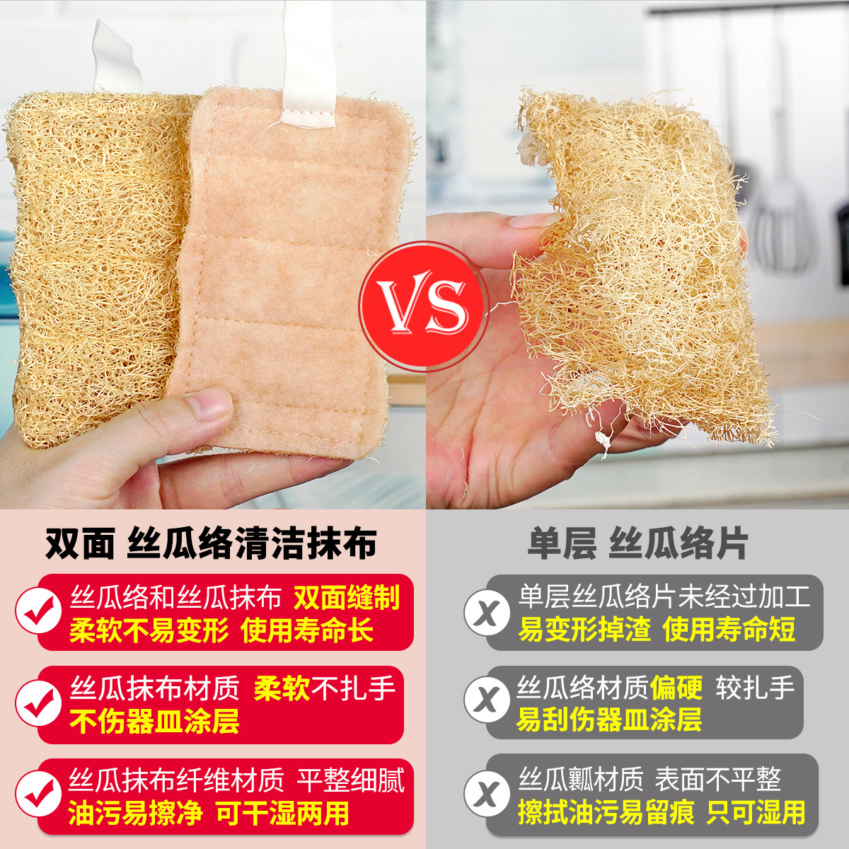 【小圆角】丝瓜络清洁抹布(11*7cm)