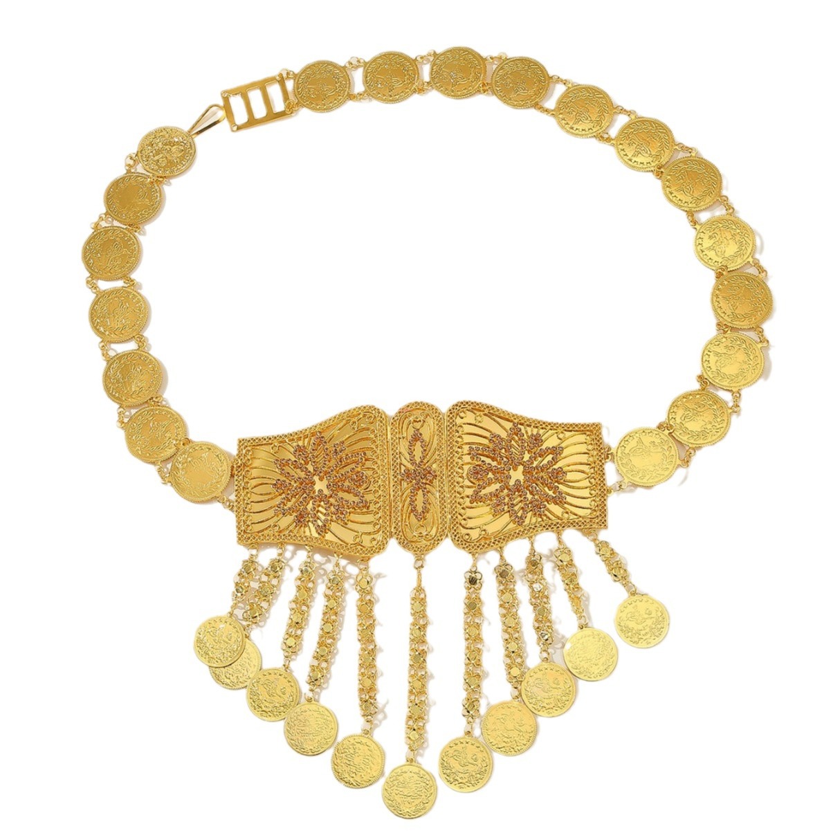跨境民族风休闲时尚金属女高级感钱币流苏腰饰连衣裙子腰链批发 English | 投诉