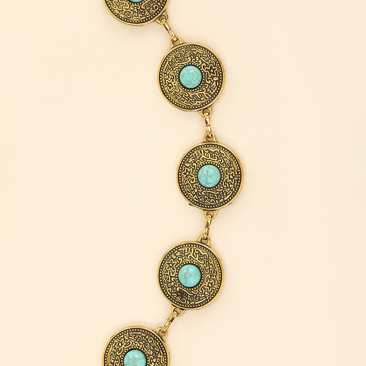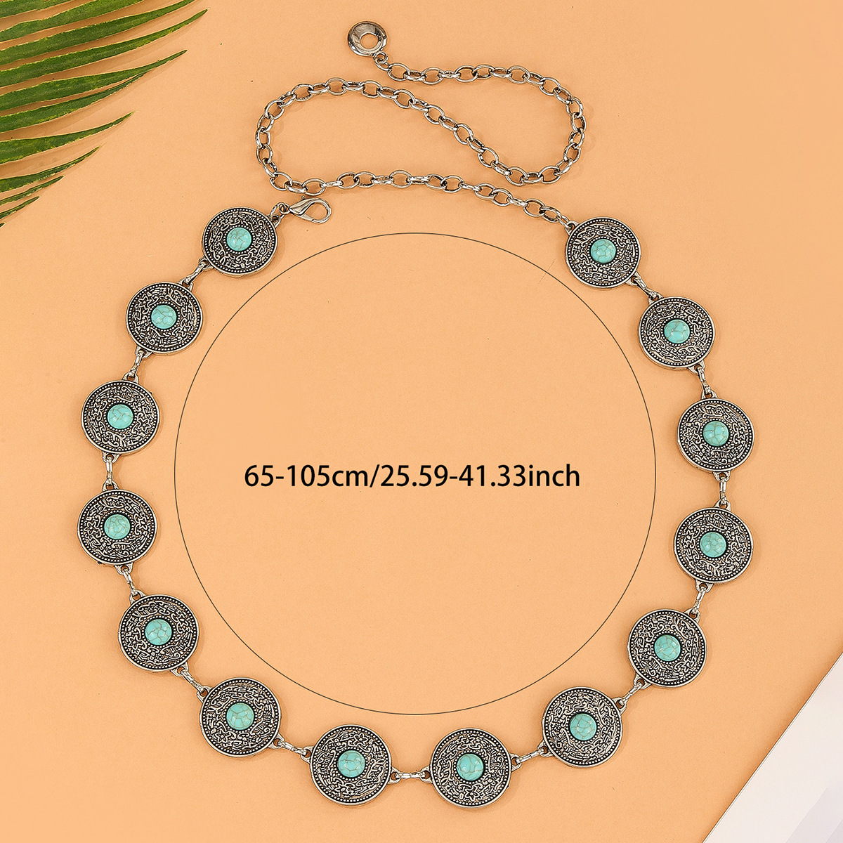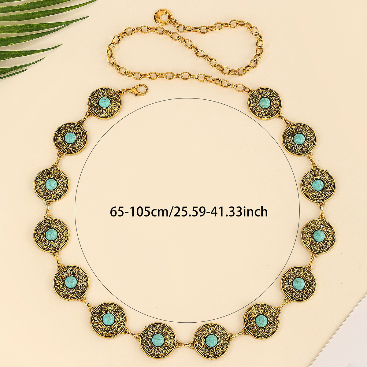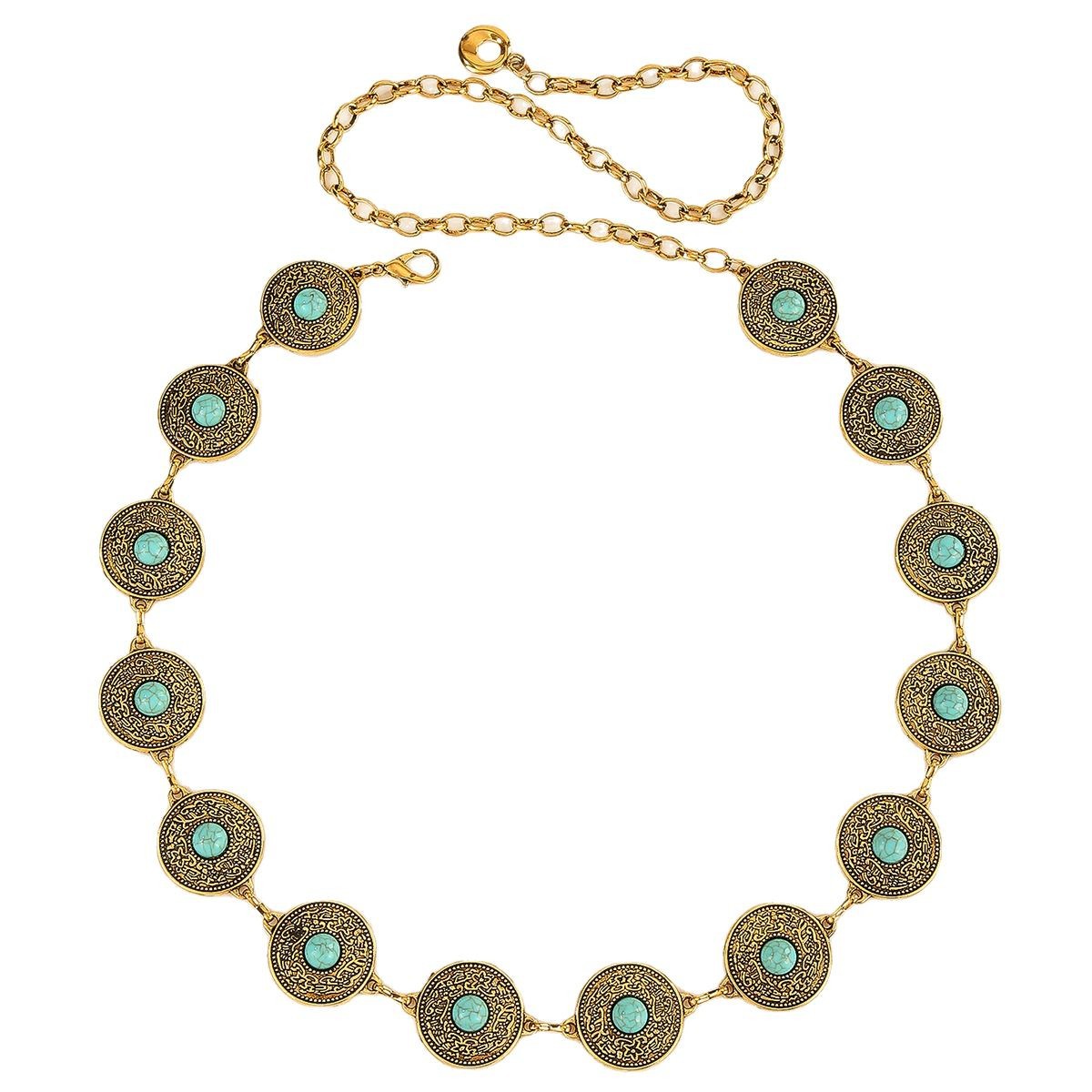 跨境复古雕花金属腰链绿松镶嵌高级感腰链连衣裙礼服百搭腰链批发 English | 投诉