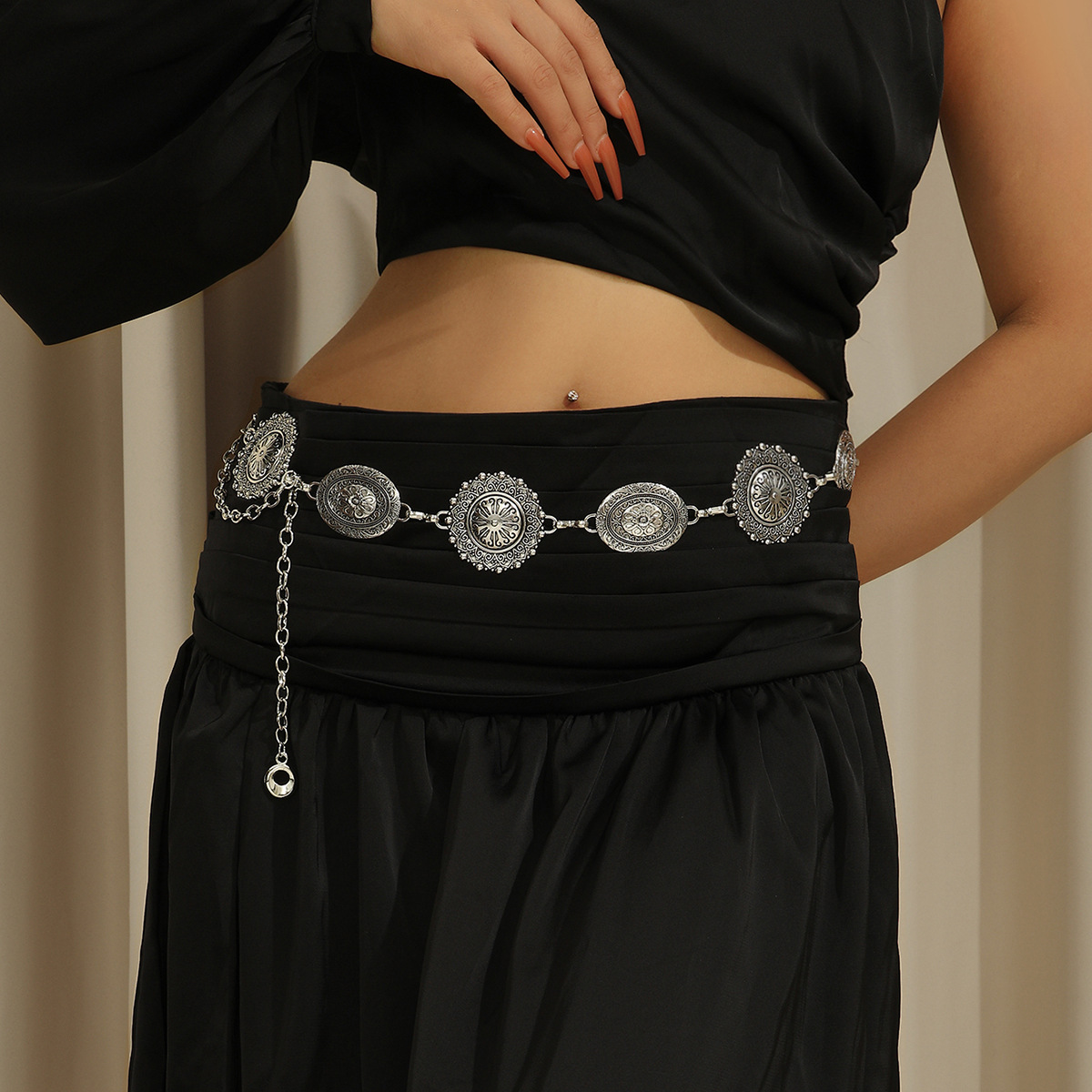 跨境复古雕花合金腰链ins连衣裙衬衫百搭收腰腰链高级感时尚腰带