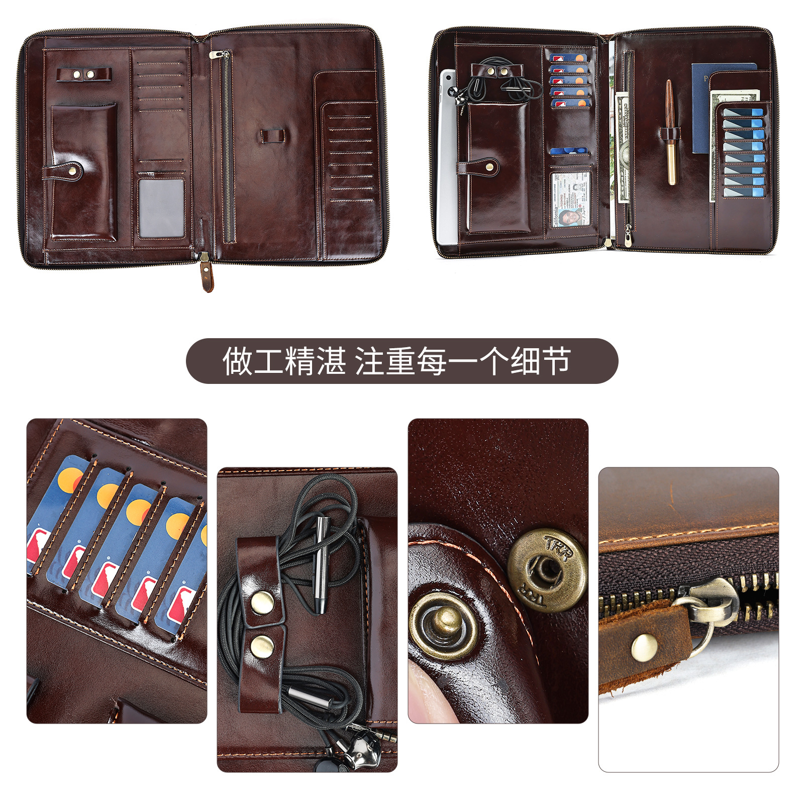 外贸热销款男士疯马皮手拿包真皮ipad 大容量复多功能高级收纳包 投诉