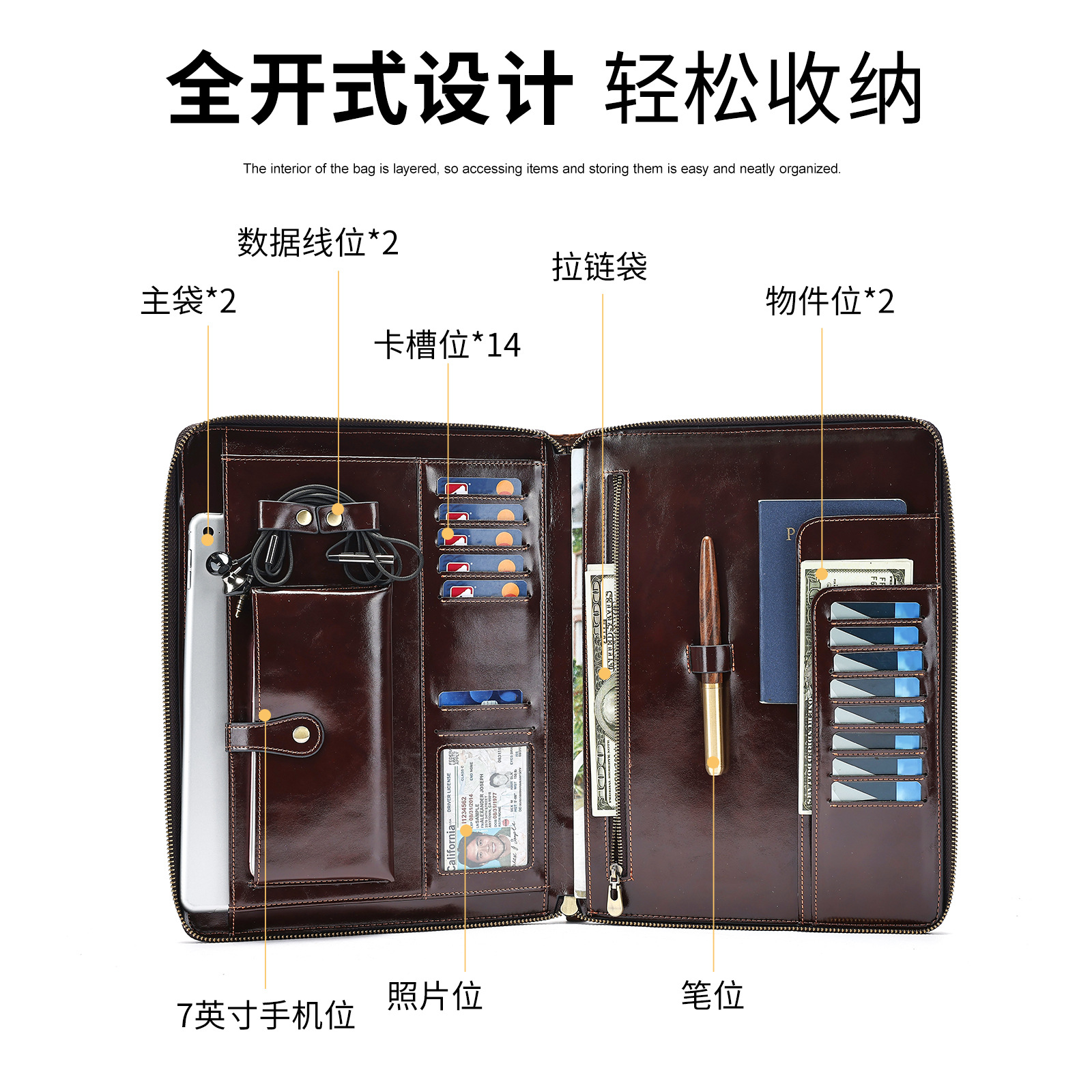 外贸热销款男士疯马皮手拿包真皮ipad 大容量复多功能高级收纳包