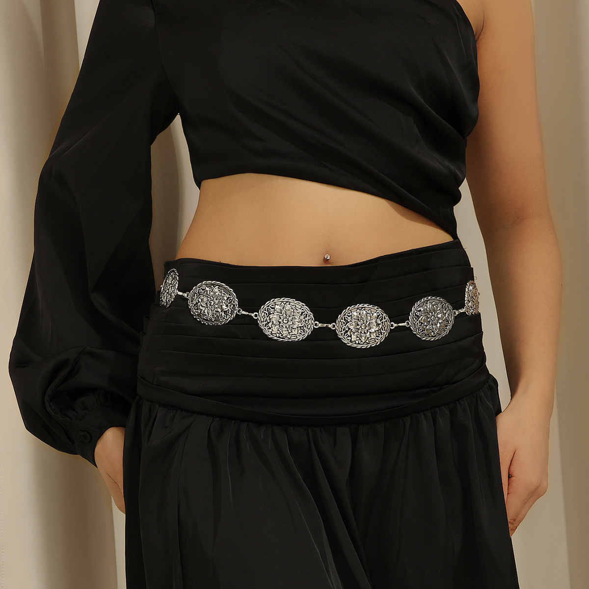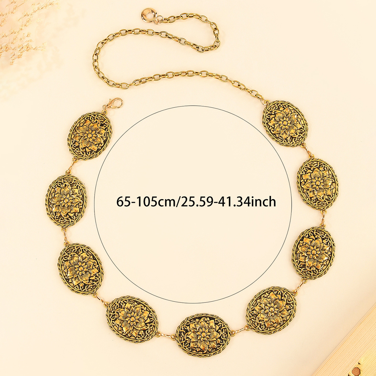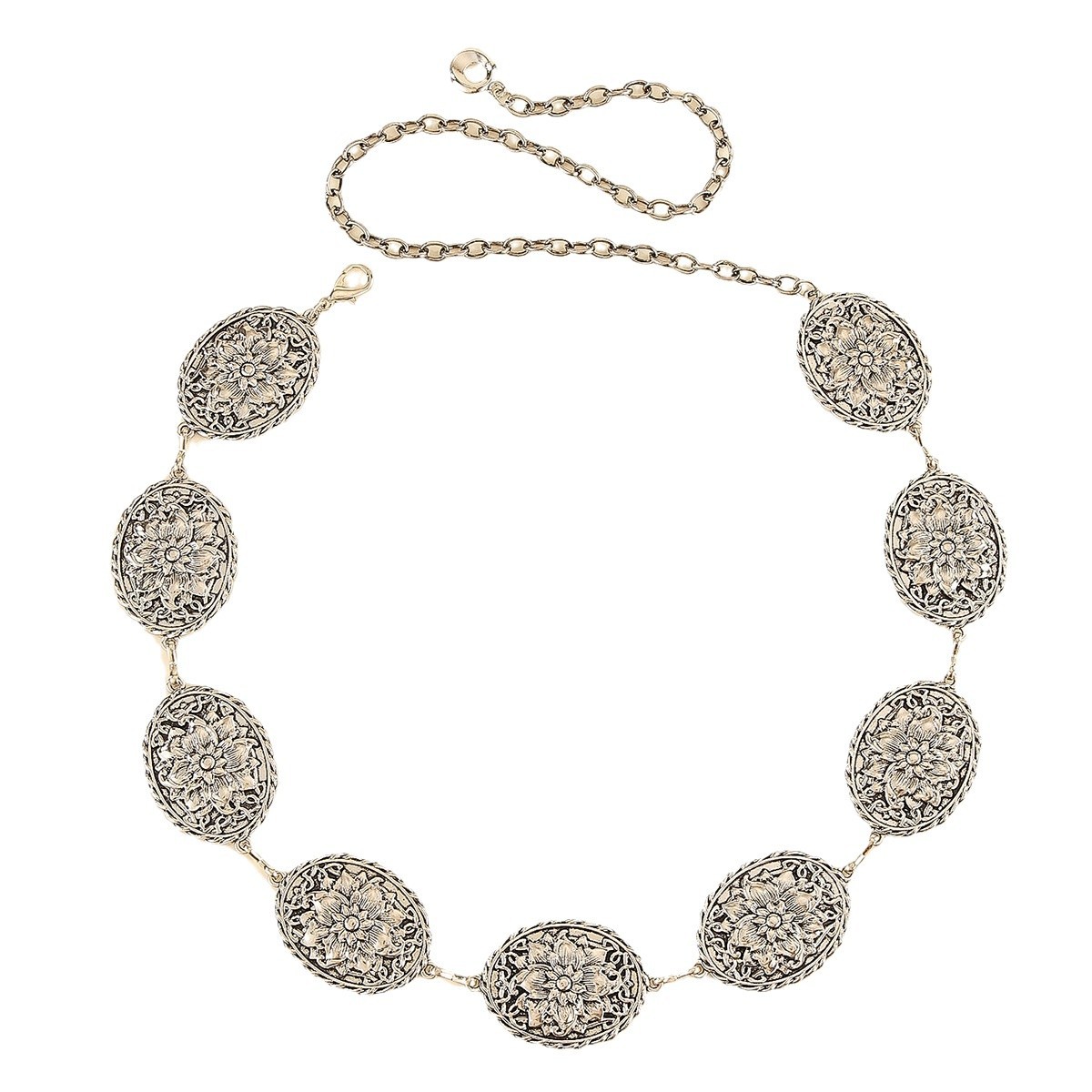 欧美复古莲花腰链休闲裙礼服百搭金属腰带可调节身体链百搭腰饰 English | 投诉