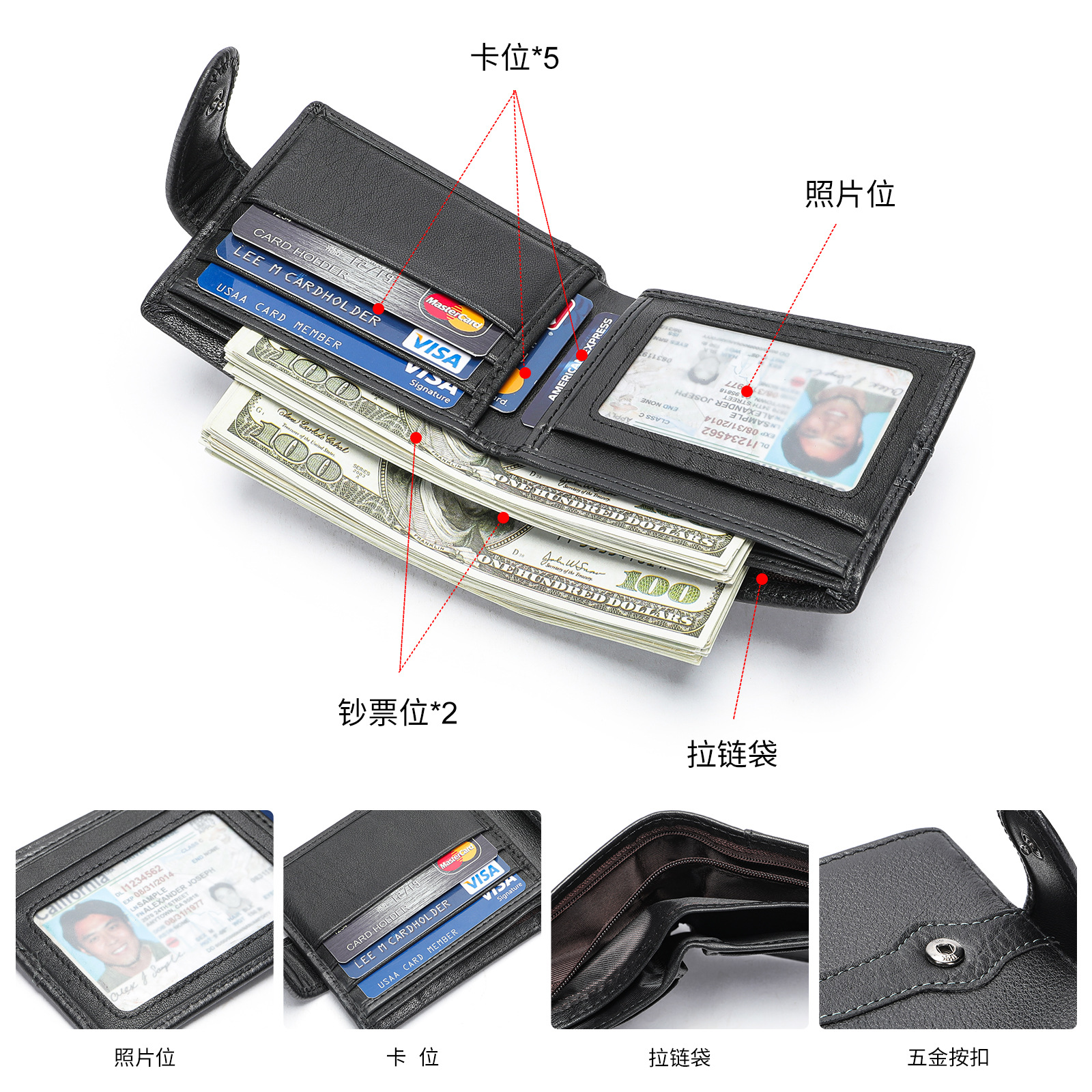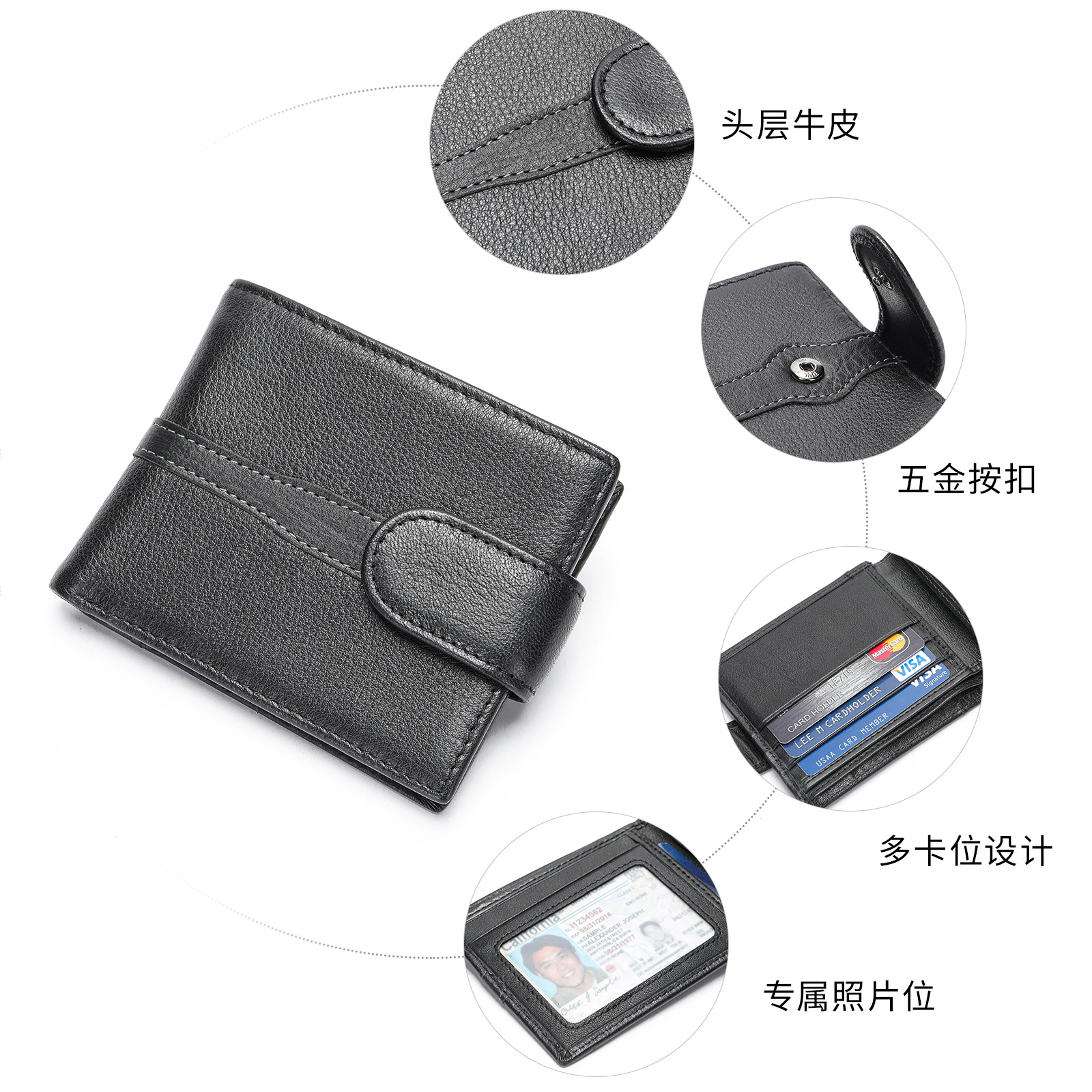 材质: 真皮 皮质特征: 头层牛皮 功能: 耐磨 里料质地: 涤棉 钱夹折数: 2折 品牌: 玛轮特 图案: 纯色 风格: 欧美复古 货号: 1142-3 流行元素: 车缝线 颜色: 全黑色 长款,全黑色 短款 有可授权的自有品牌: 是 上市年份季节: 2024年春季 适用场景: 日常搭配 重量: 0.25 kg/个