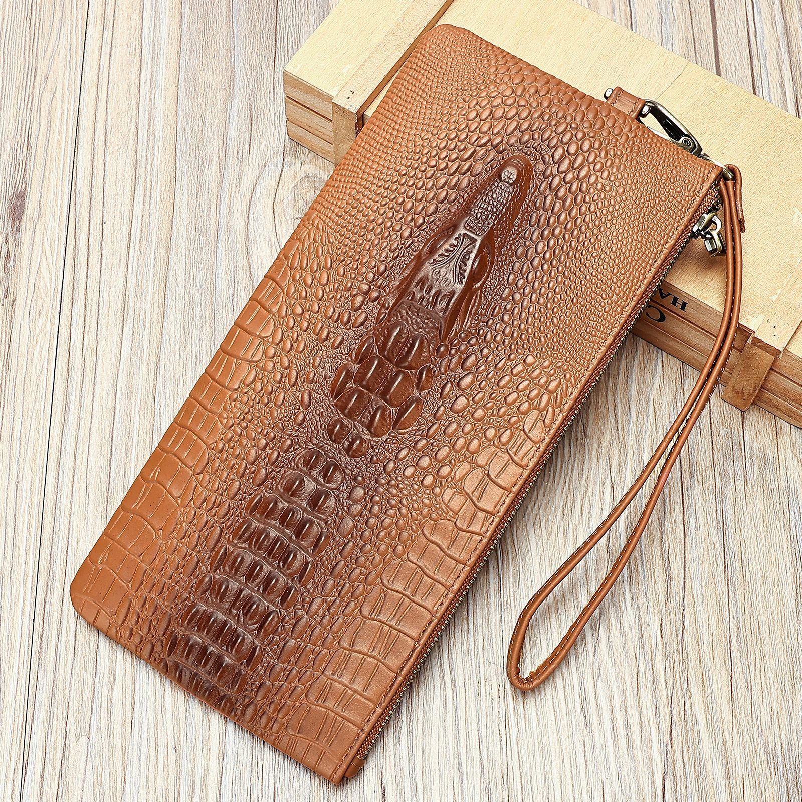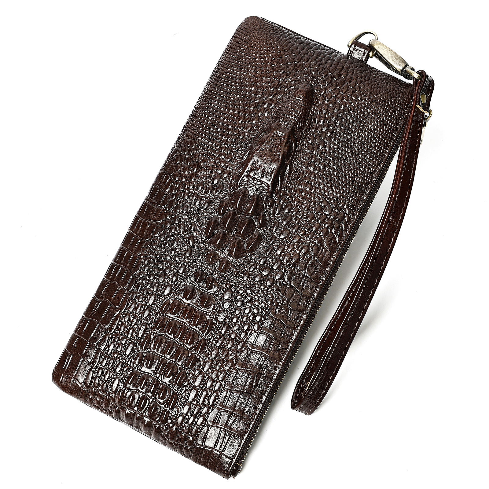 跨境复古真皮钱包男士鳄鱼纹牛皮钱夹男款商务多卡位长款男式皮夹