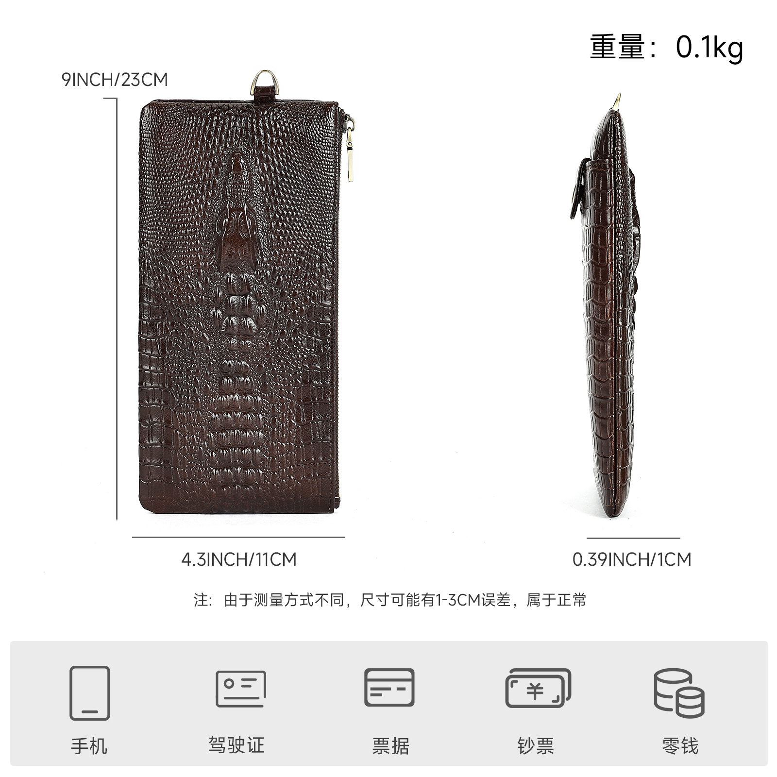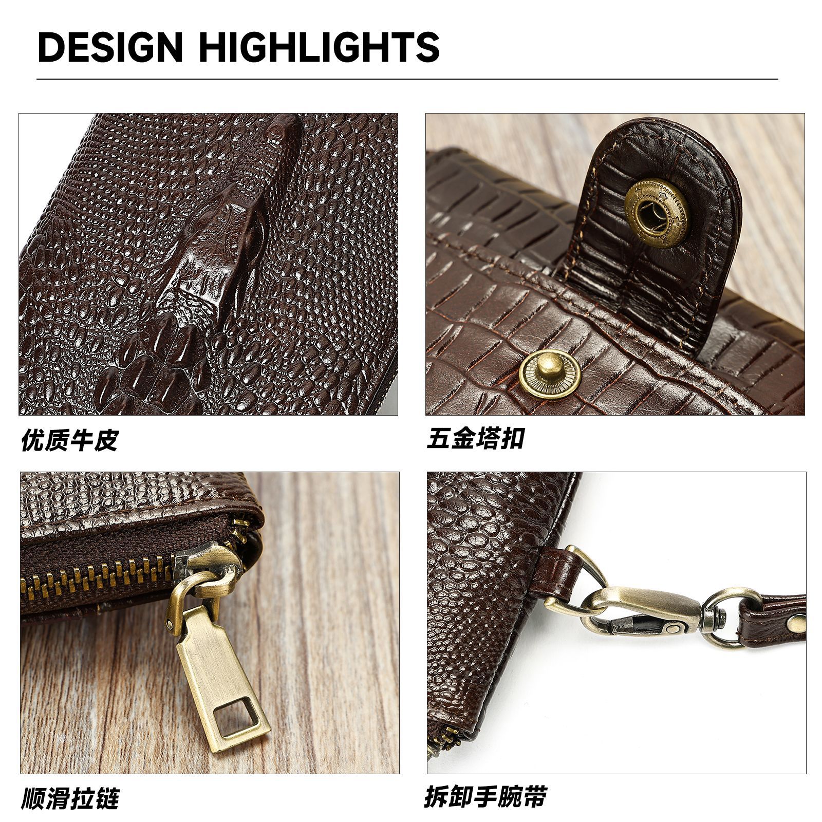 跨境复古真皮钱包男士鳄鱼纹牛皮钱夹男款商务多卡位长款男式皮夹 投诉