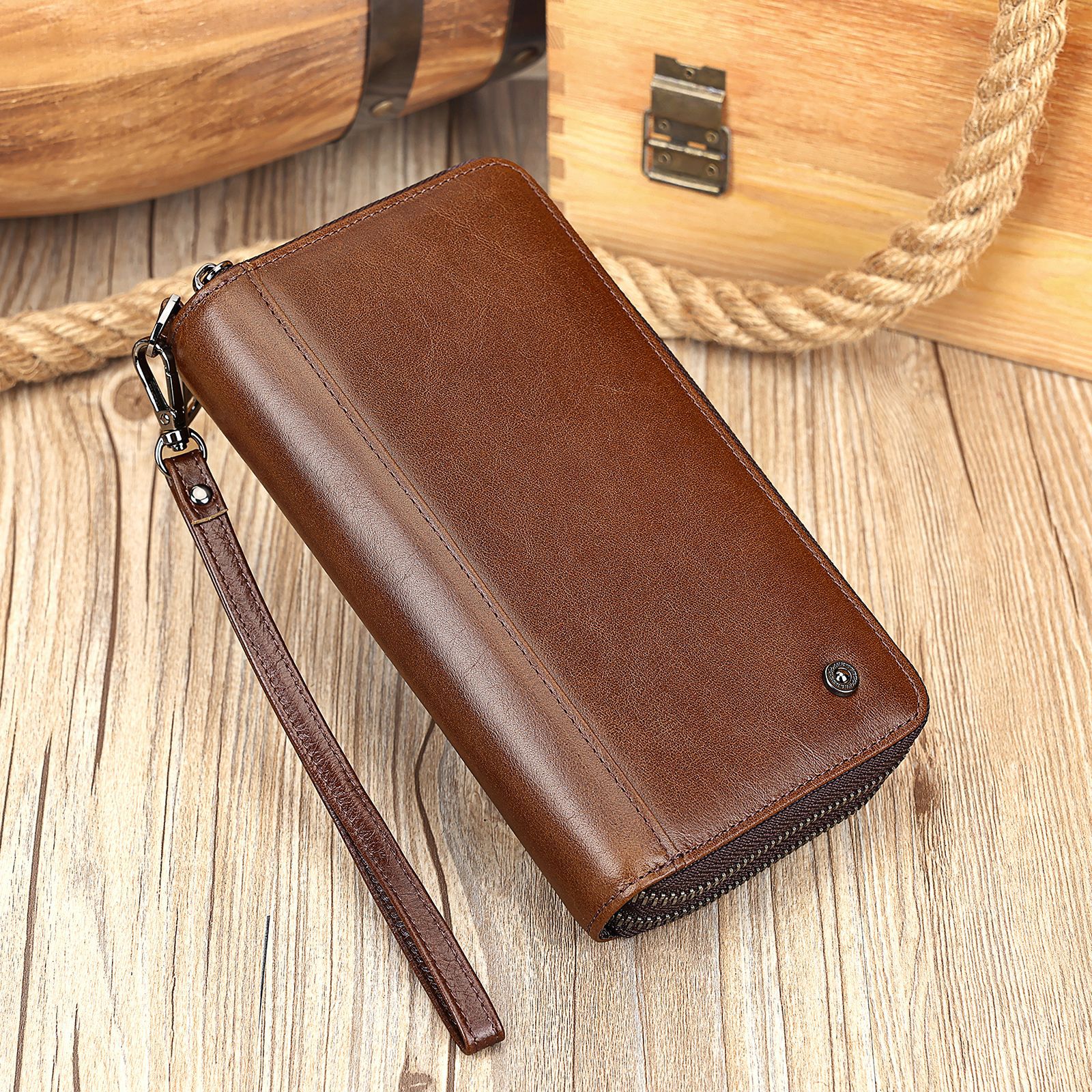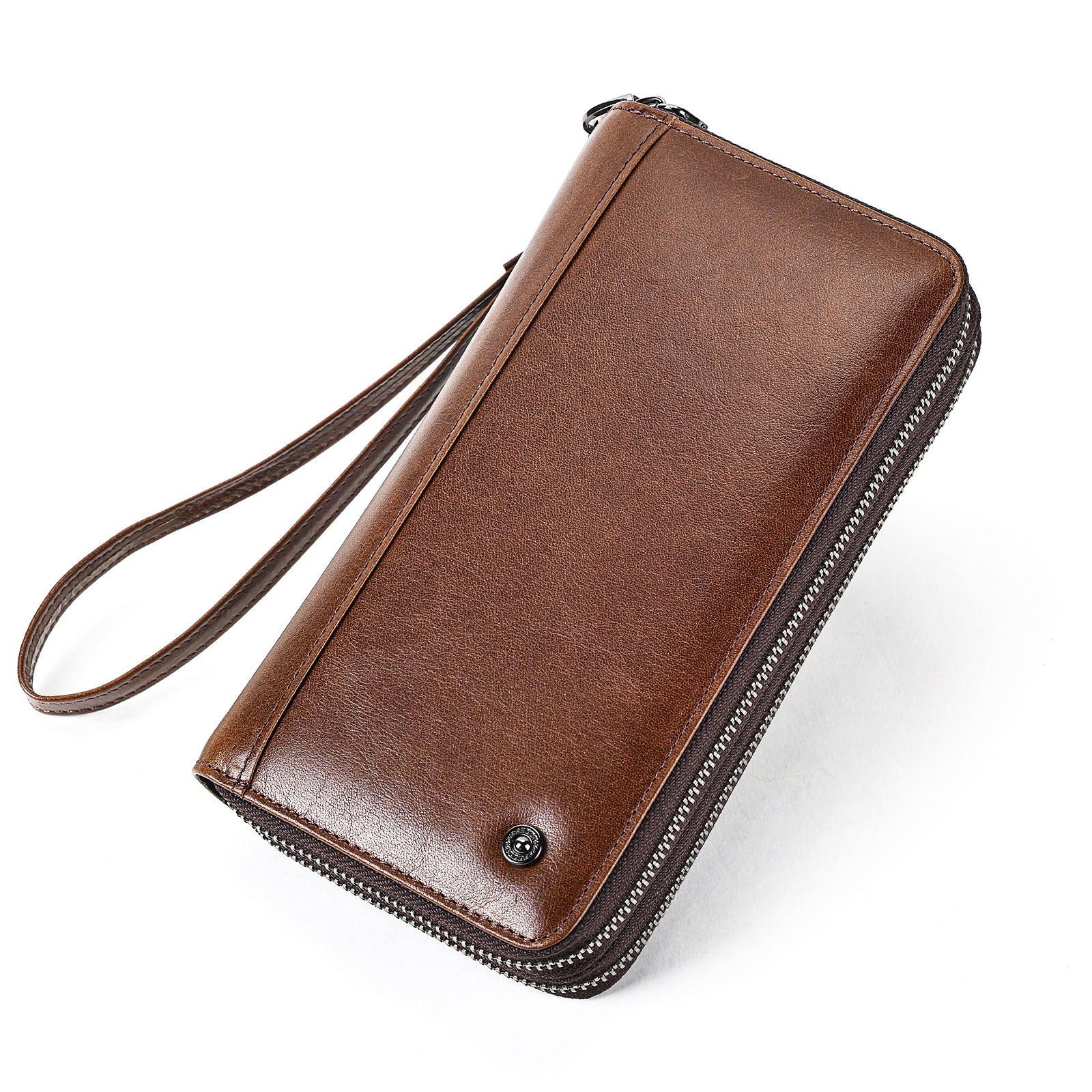 外贸新款大容量多卡位手拿包长款复古油蜡皮钱包男士商务真皮手包