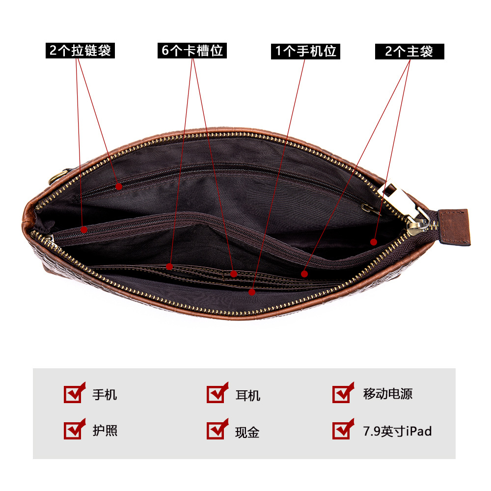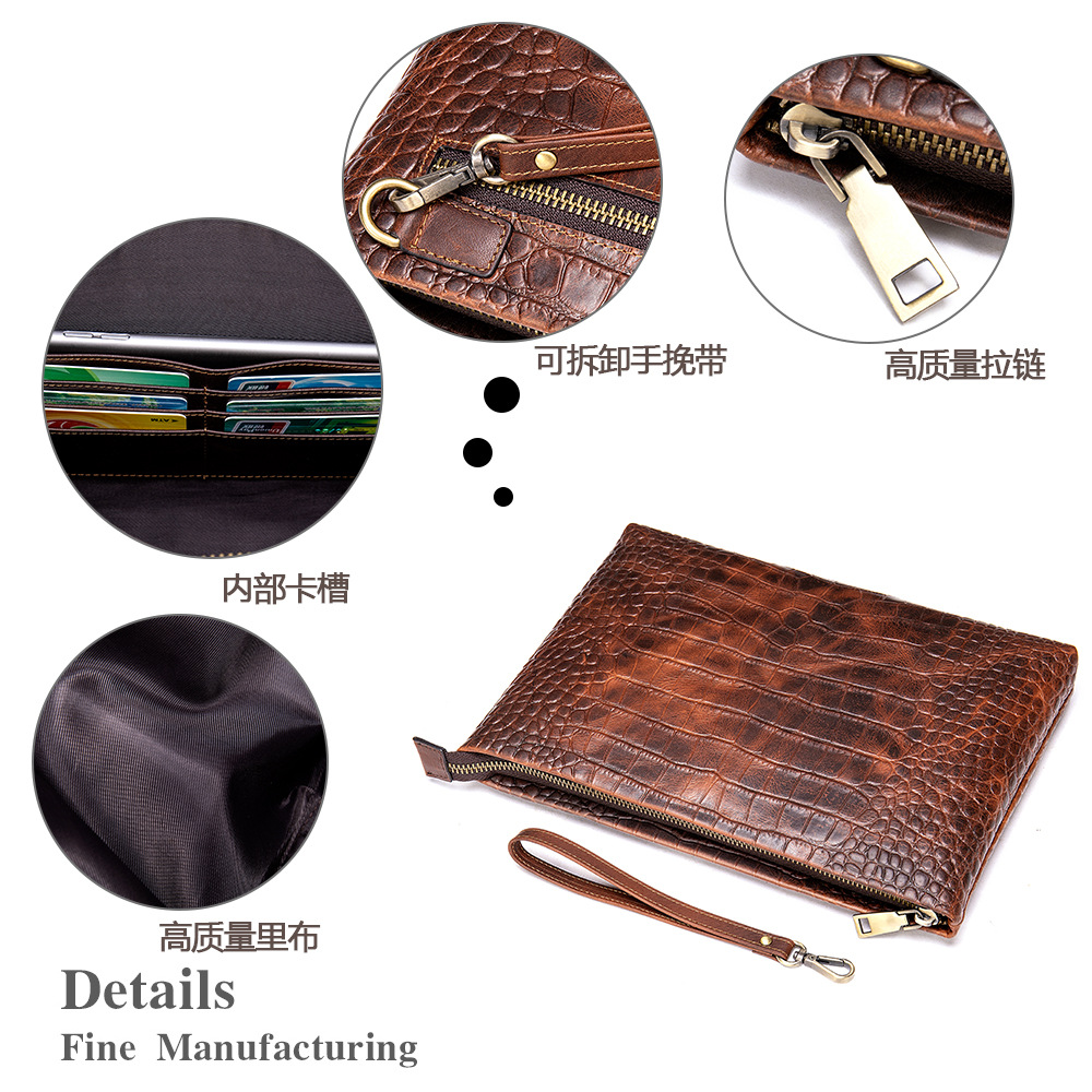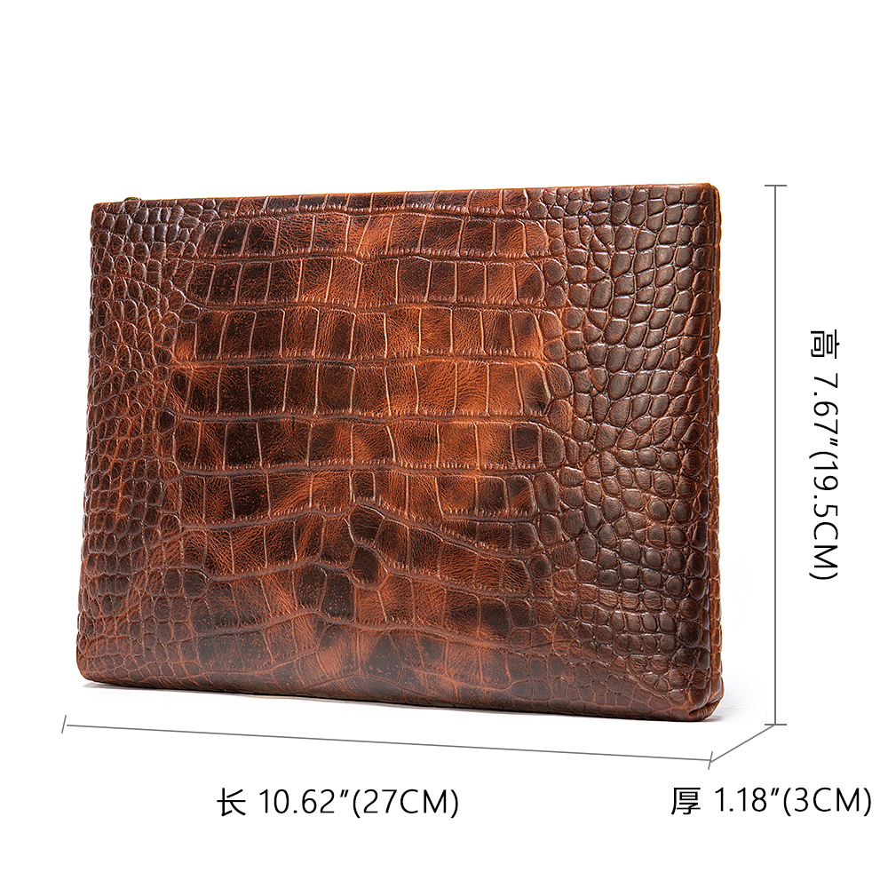 复古鳄鱼纹真皮商务差旅大容量手拿包男士高级感简约牛皮信封包男 投诉