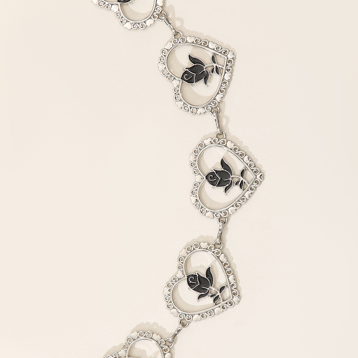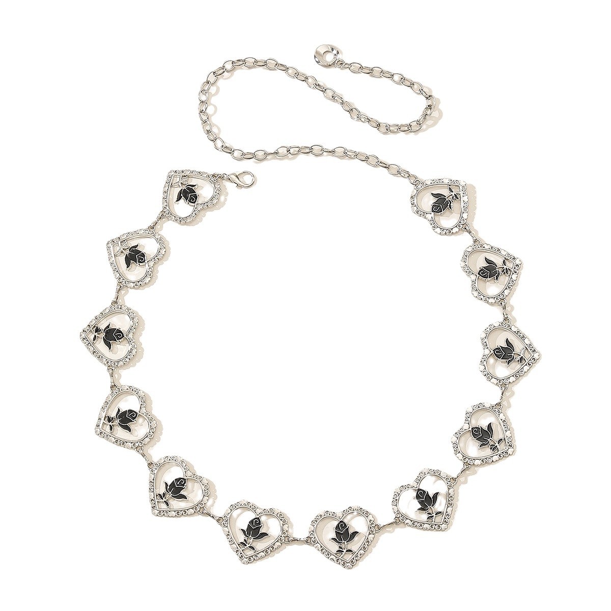 跨境黑色镂空玫瑰花爱心腰链牛仔裤装饰时尚潮流金属连衣裙腰带