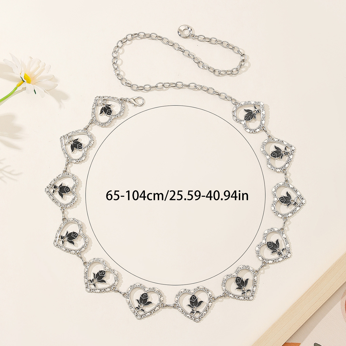 跨境黑色镂空玫瑰花爱心腰链牛仔裤装饰时尚潮流金属连衣裙腰带 English | 投诉