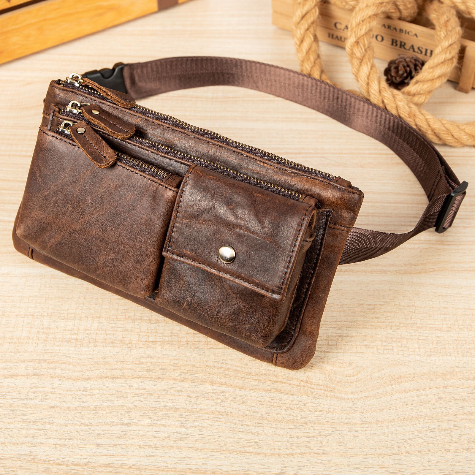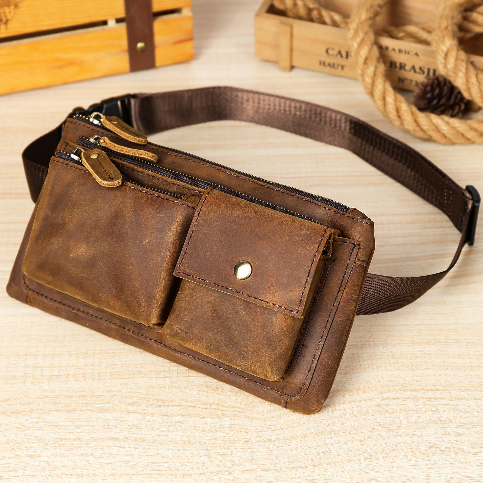 头层牛皮腰包男士胸包疯马皮复古男包多功能手拿包高级感真皮腰包 投诉