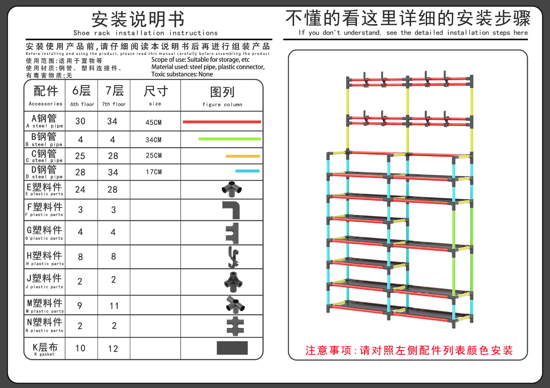 单排4层-5层61*47.5*37.5cm/双排4层-5层49*47.5*41.5cm/双排6层-7层53*47.5*41.5cm