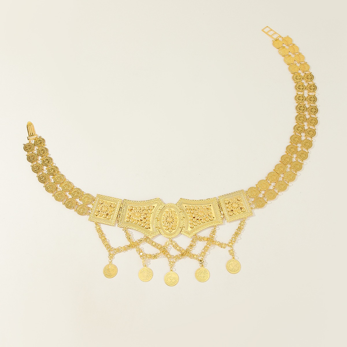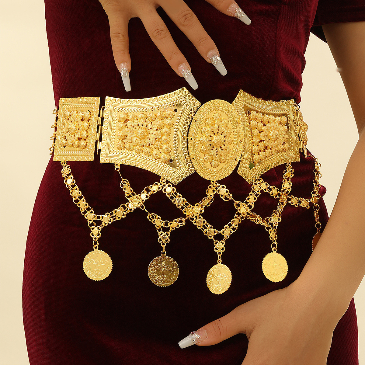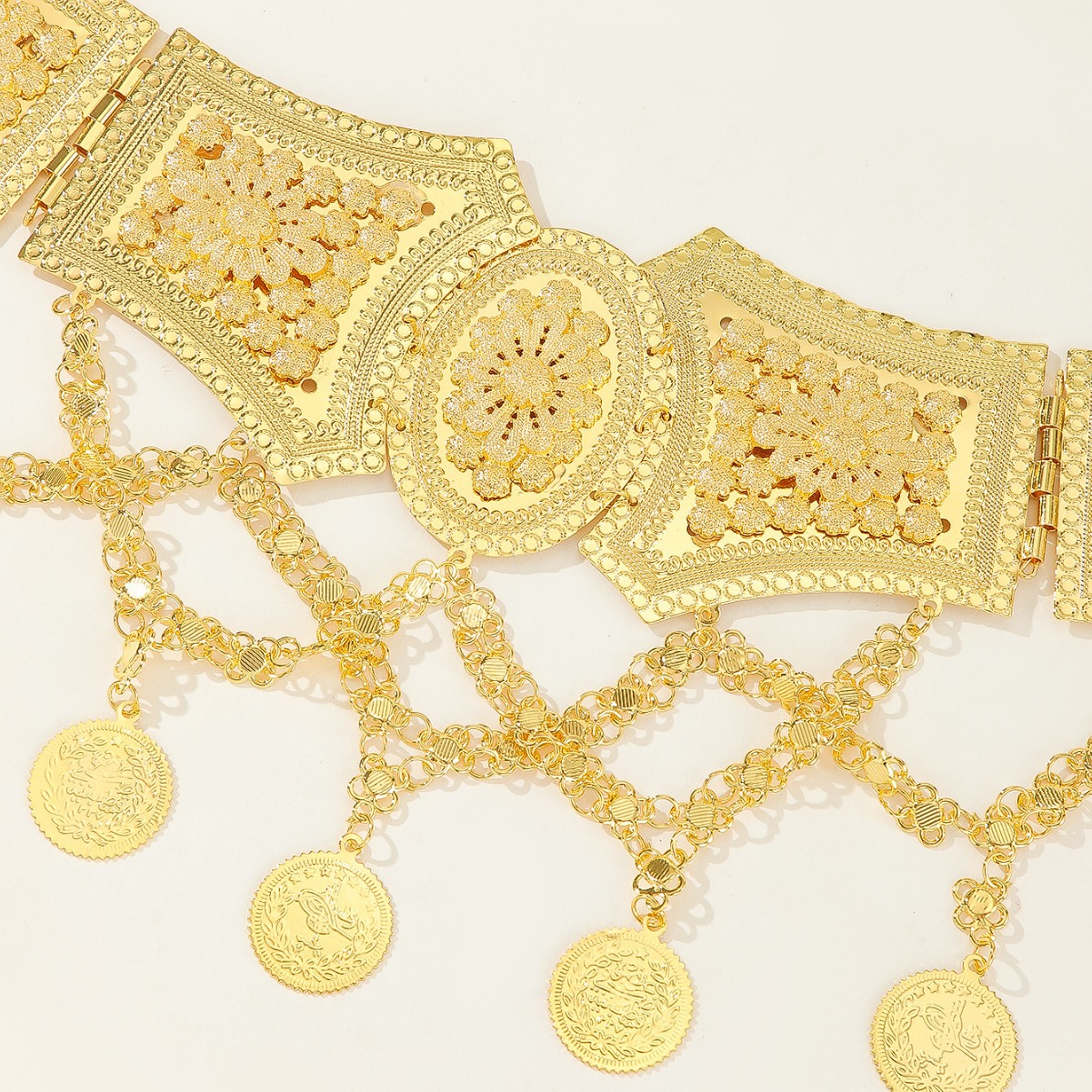 金属服装腰链连衣裙裙子腰带牛仔裤身体链镂空金色链带服饰配件 English | 投诉