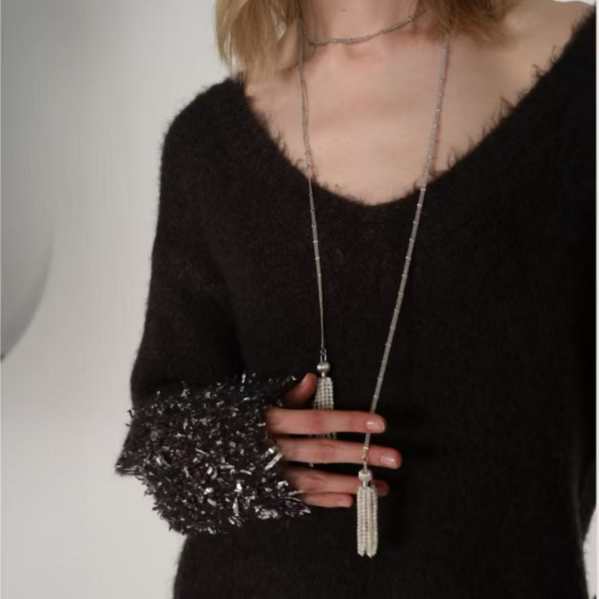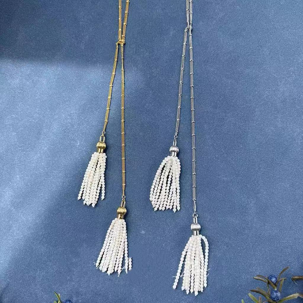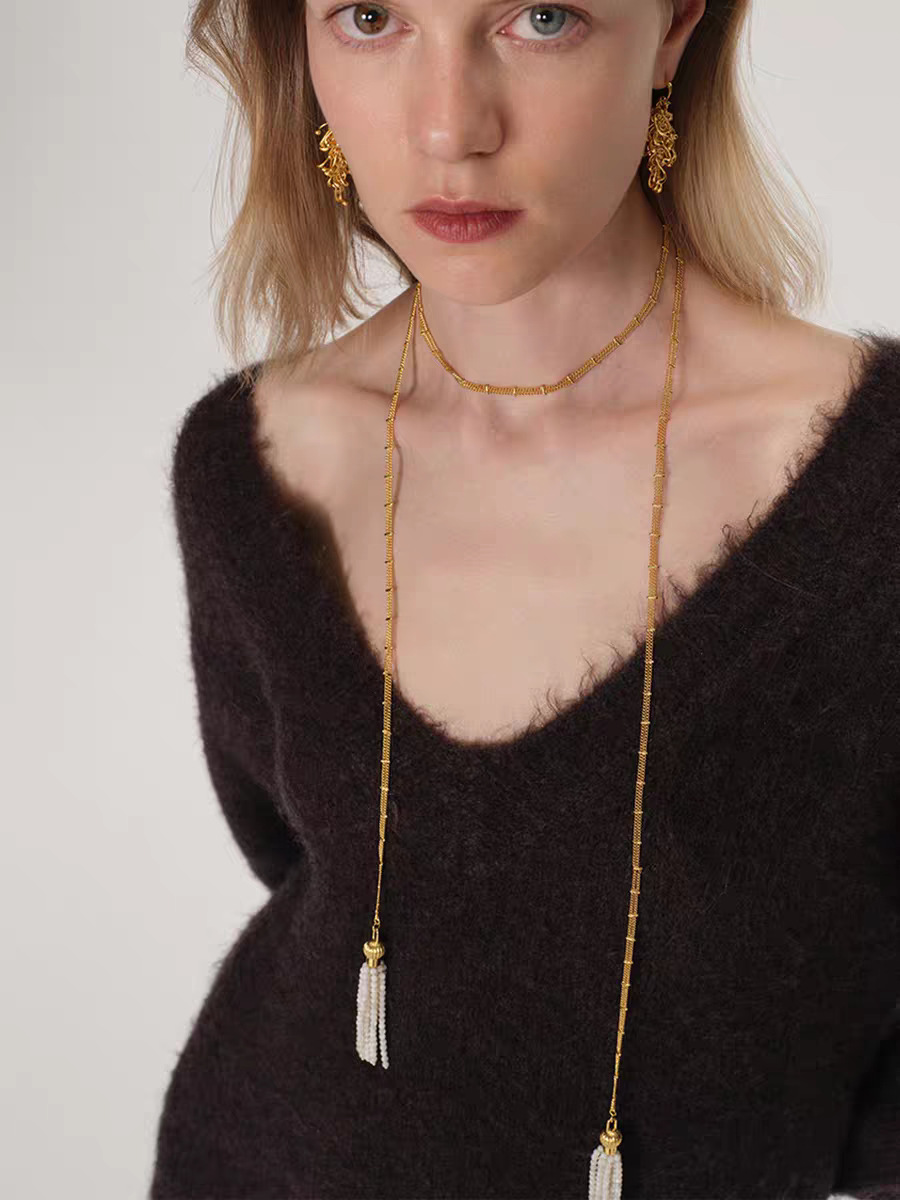 高级感淡水珍珠小米珠巴洛克s926银镀18k金可调节项链简约毛衣链 投诉