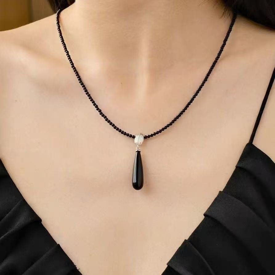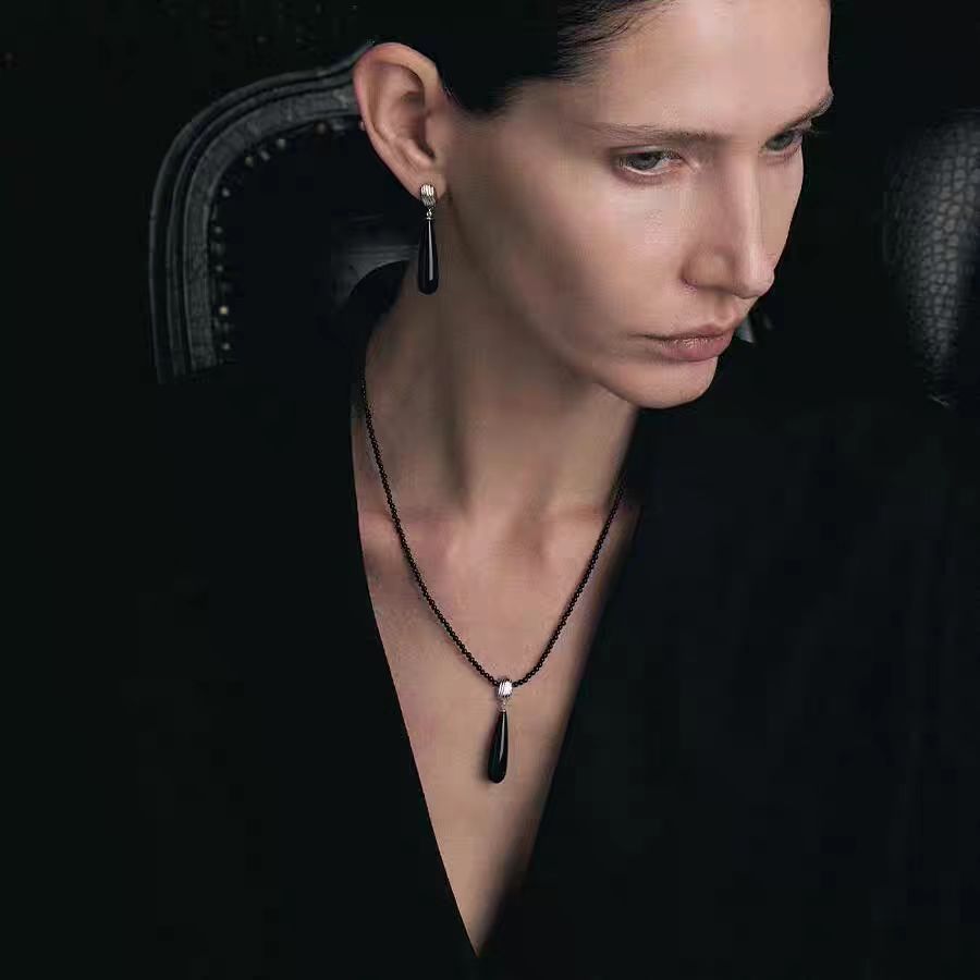 秋冬新款饰品高级感水滴吊坠项链冷淡风耳环轻奢时尚百搭配饰女