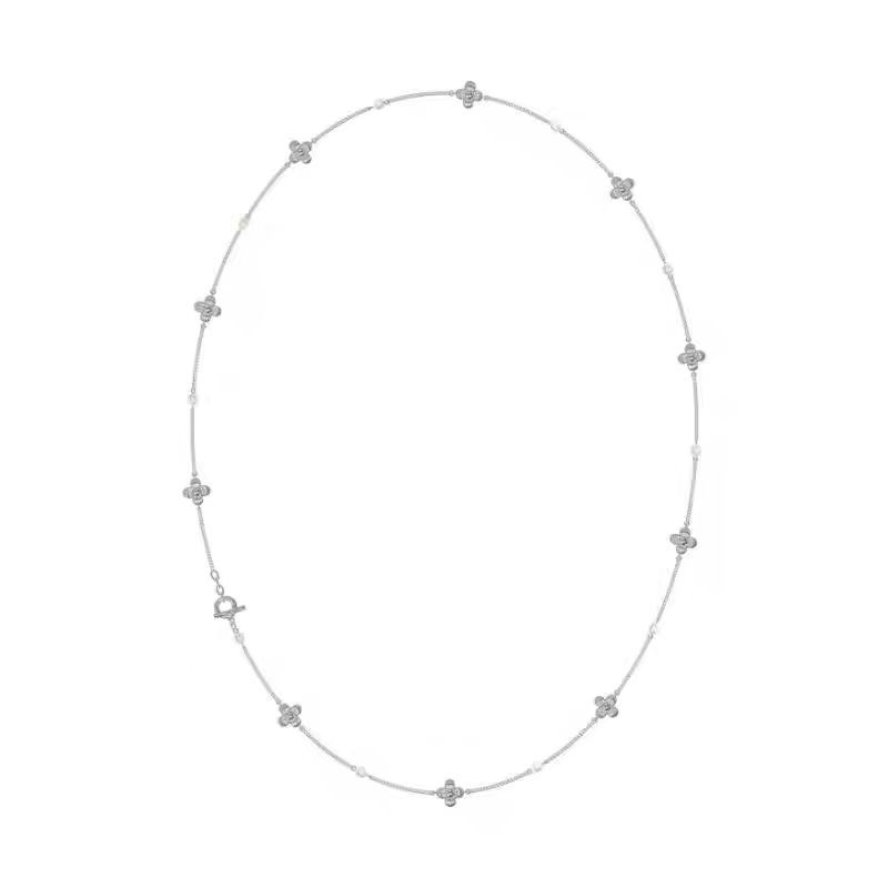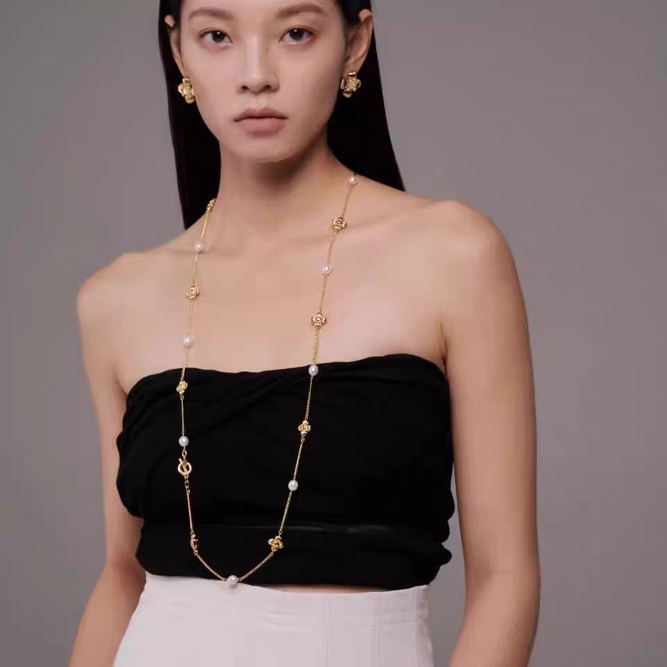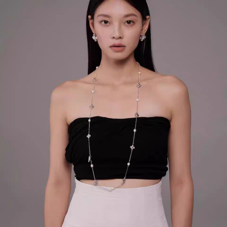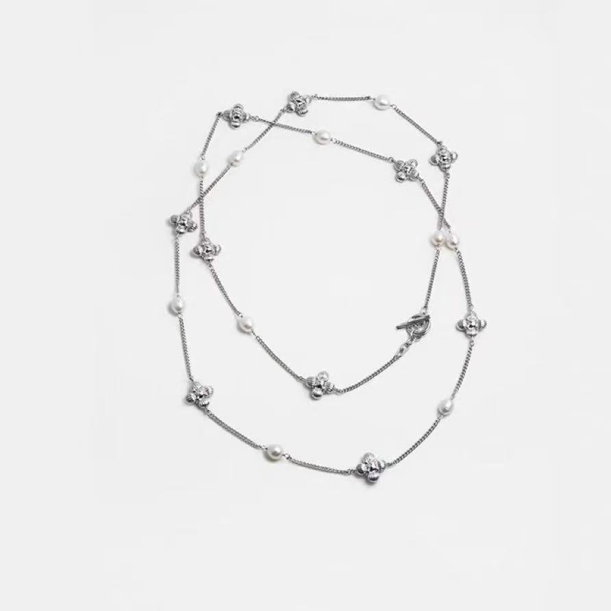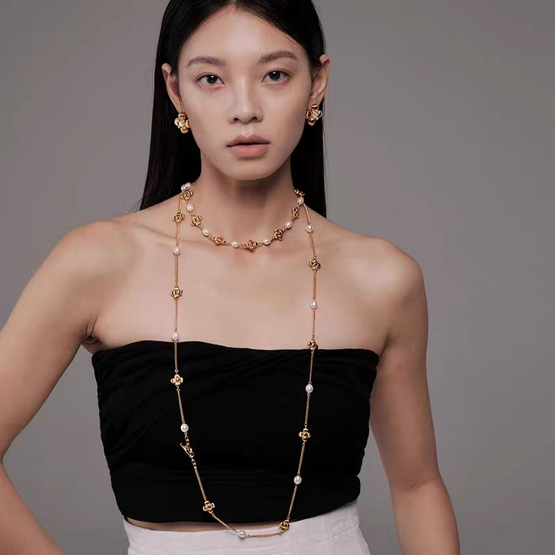 中古风国潮暗香十花珍珠长项链女高级配饰品锁骨链颈链轻奢毛衣链