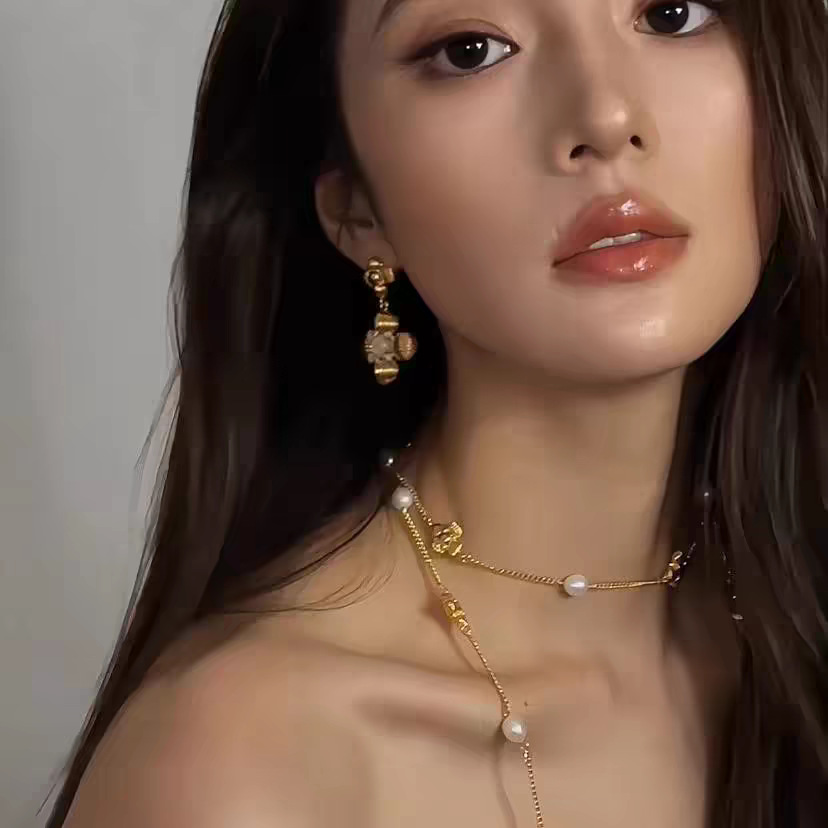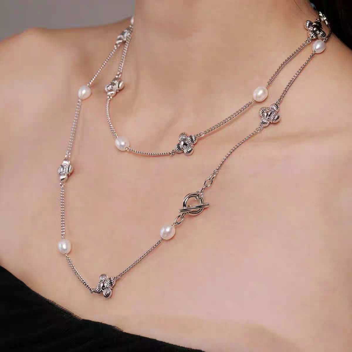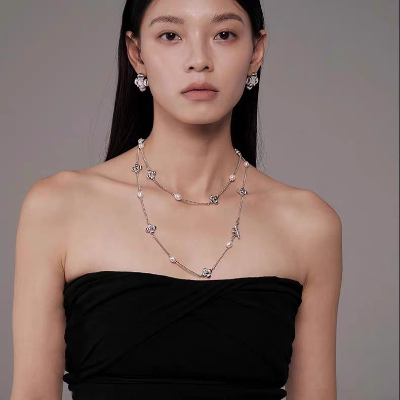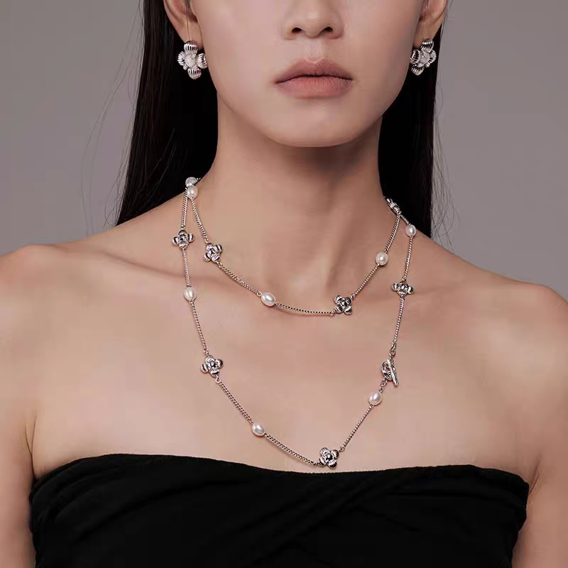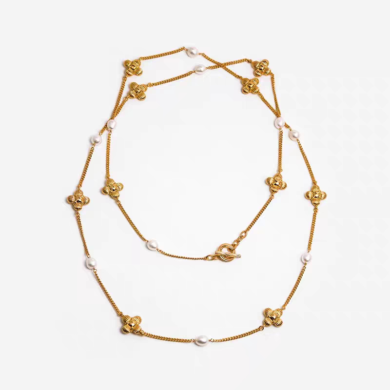 中古风国潮暗香十花珍珠长项链女高级配饰品锁骨链颈链轻奢毛衣链
