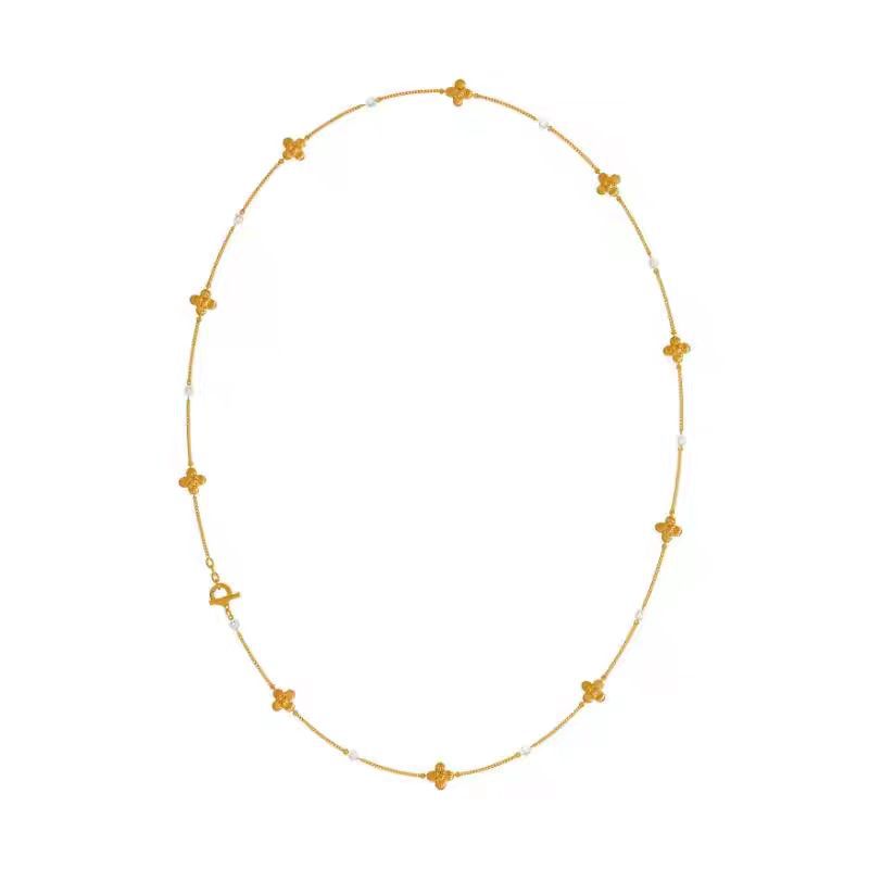 中古风国潮暗香十花珍珠长项链女高级配饰品锁骨链颈链轻奢毛衣链 投诉