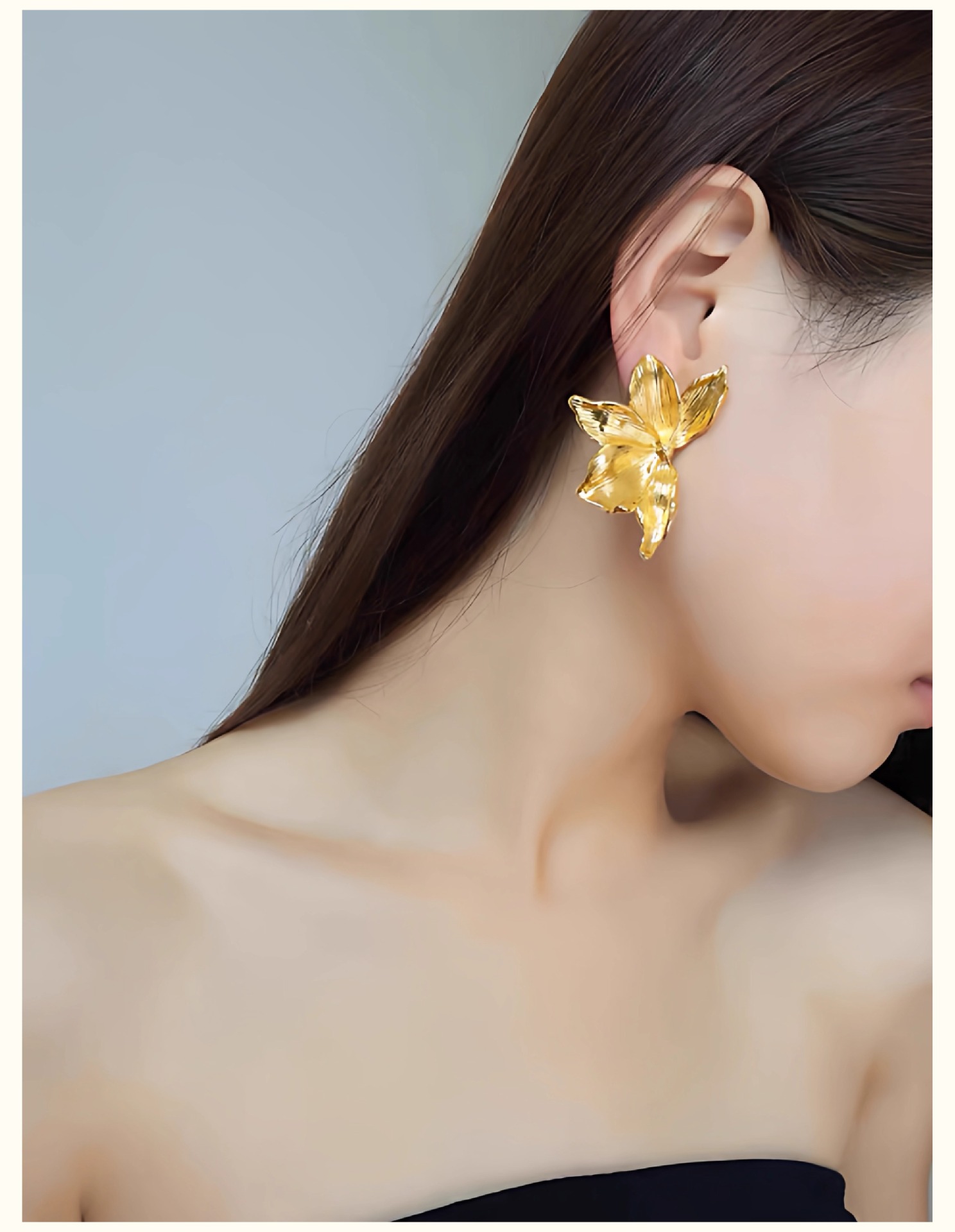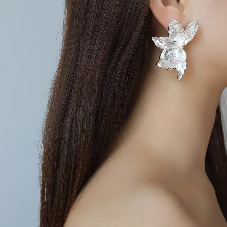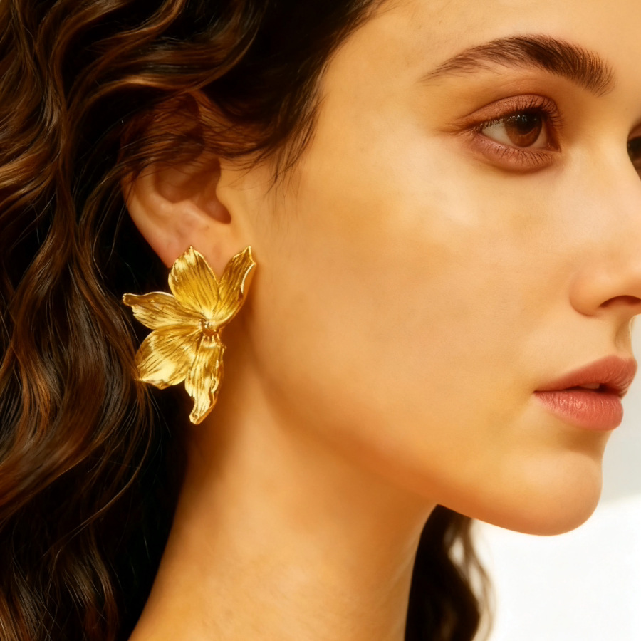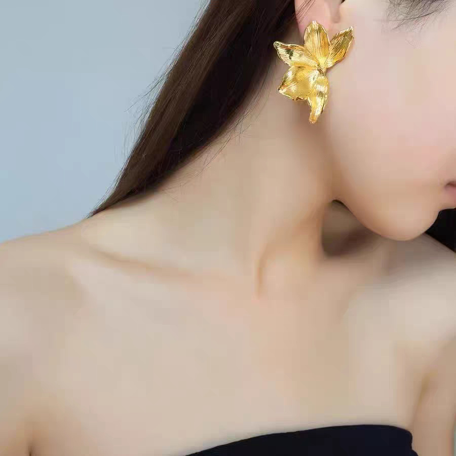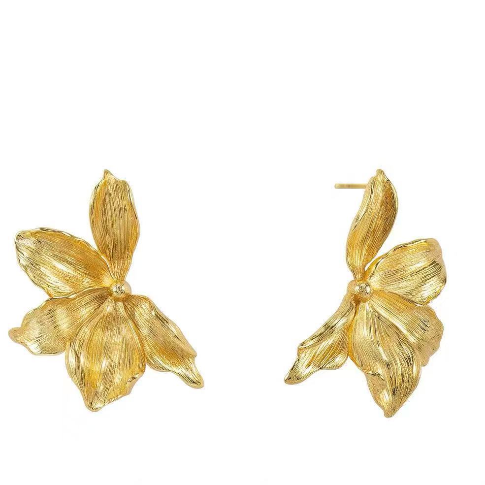 跨境复古金色花朵花瓣耳钉女钛钢镀18K金大气高级设计感耳环耳饰