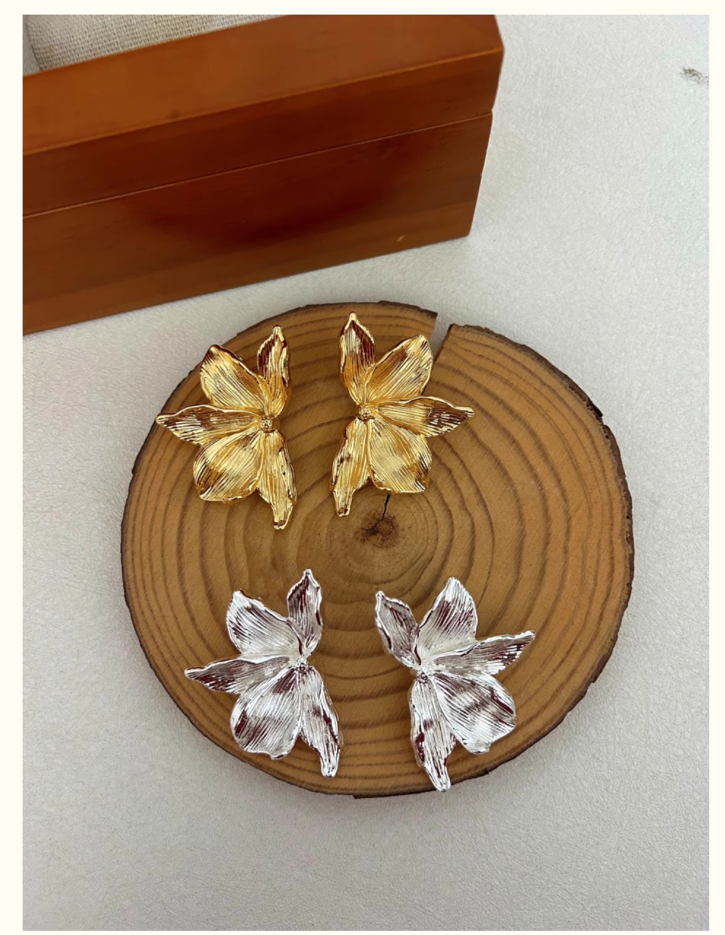 材质: 铜镀真金+925银针 处理工艺: 真金电镀 耳针材质: 925银 品牌: -- 流行元素: H花卉 风格: 高级感 造型: 几何型 货号: 20251121 产地: 青岛 主要下游平台: 淘宝,京东,ebay,亚马逊,wish, 重量: 0.013 kg/个