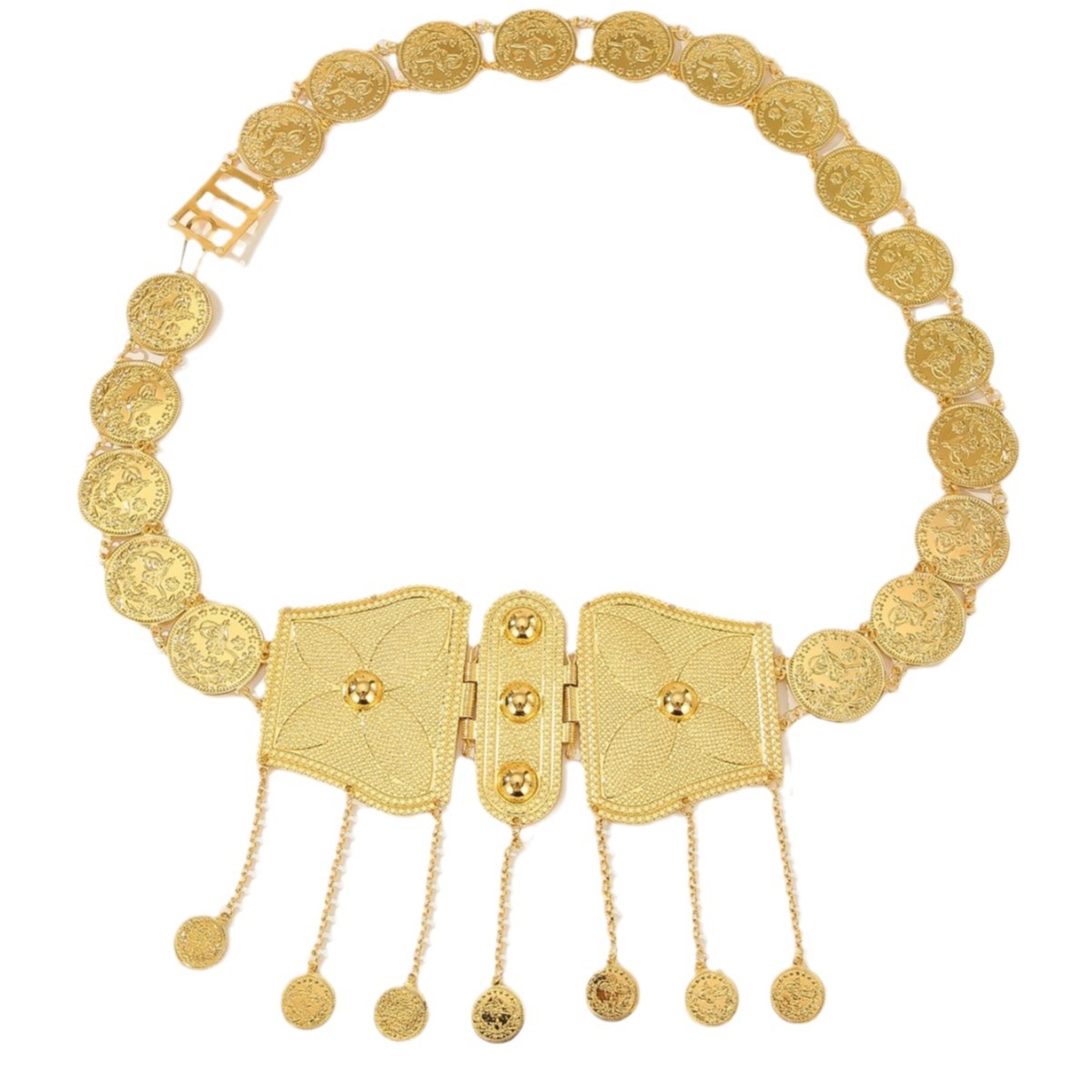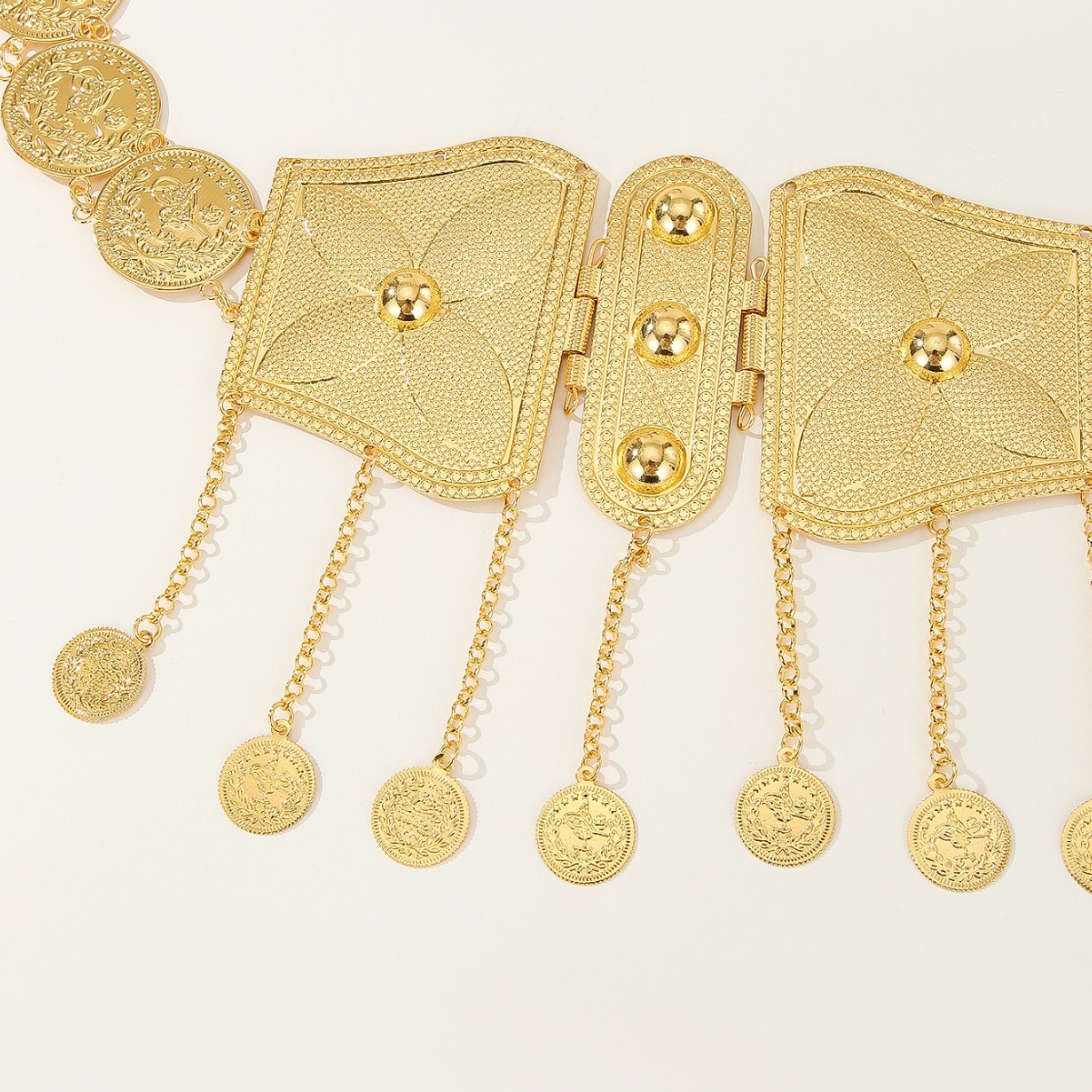 材质: 金属 产品类别: 腰链 腰带圈数: 多圈 长度(CM): 80-100cm 宽度: 咨询客服 风格: 百搭 货源类别: 现货 适用性别: 中性/男女均可 适用年龄段: 青年 颜色: 金色 包装: 咨询客服 是否外贸: 是 是否库存: 是 品牌: 自主品牌 货号: XY0985 适合季节: 夏季,冬季,春季,秋季 加工定制: 是 带扣元素: 花 上市年份/季节: 2024年夏季 主要下游平台: 咨询客服 重量: 0.25 kg/条