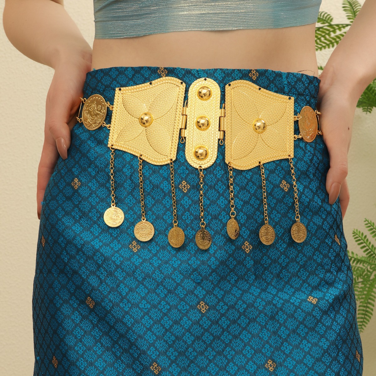 跨境波西米亚风腰饰金色流苏图腾雕刻大腰链 简约金属流苏身体链 English | 投诉