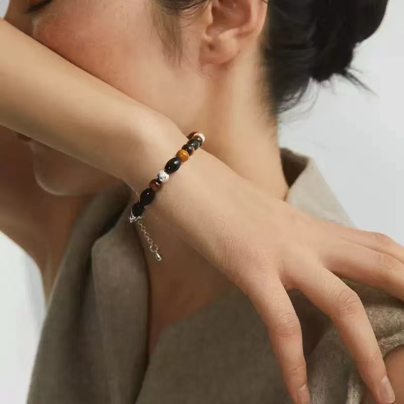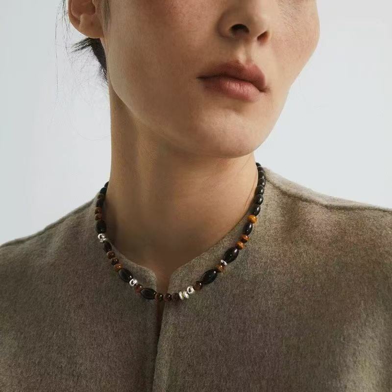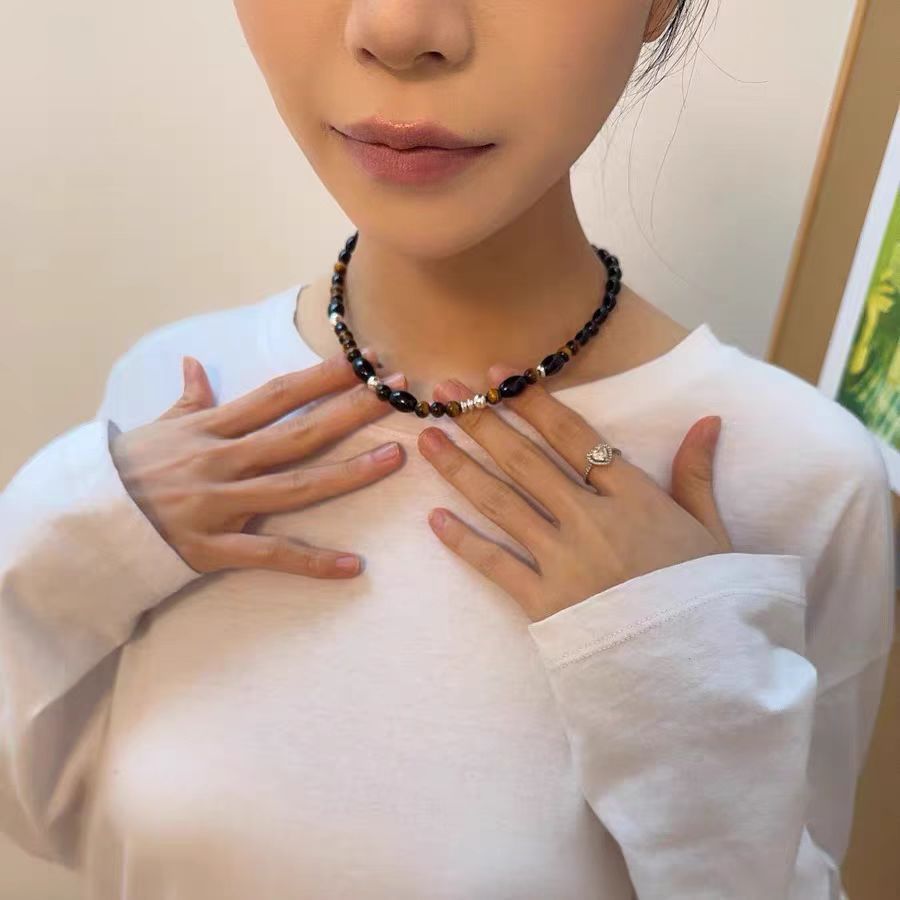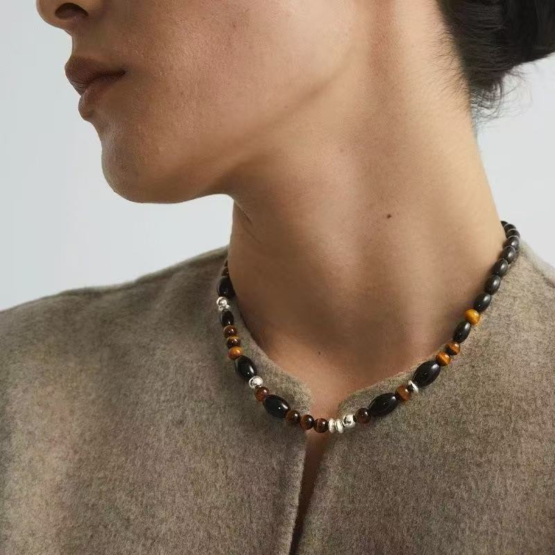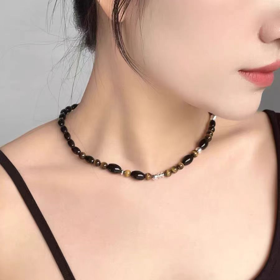 复古虎眼石串珠项链女轻奢时尚锁骨链小众设计高级感百搭毛衣链