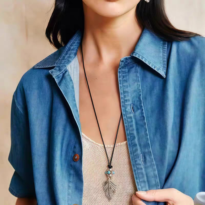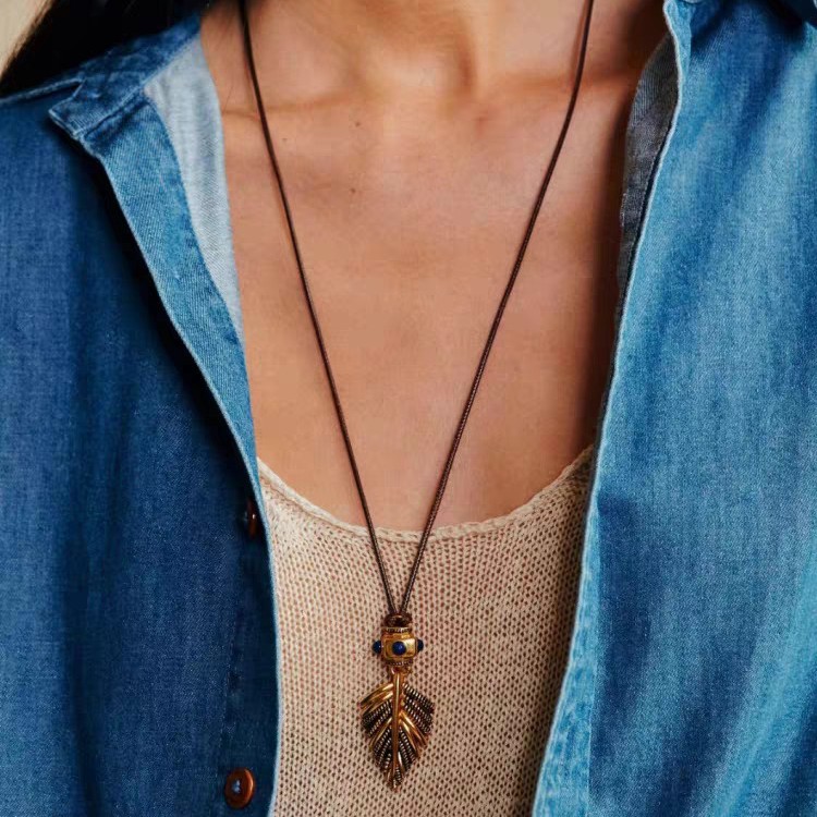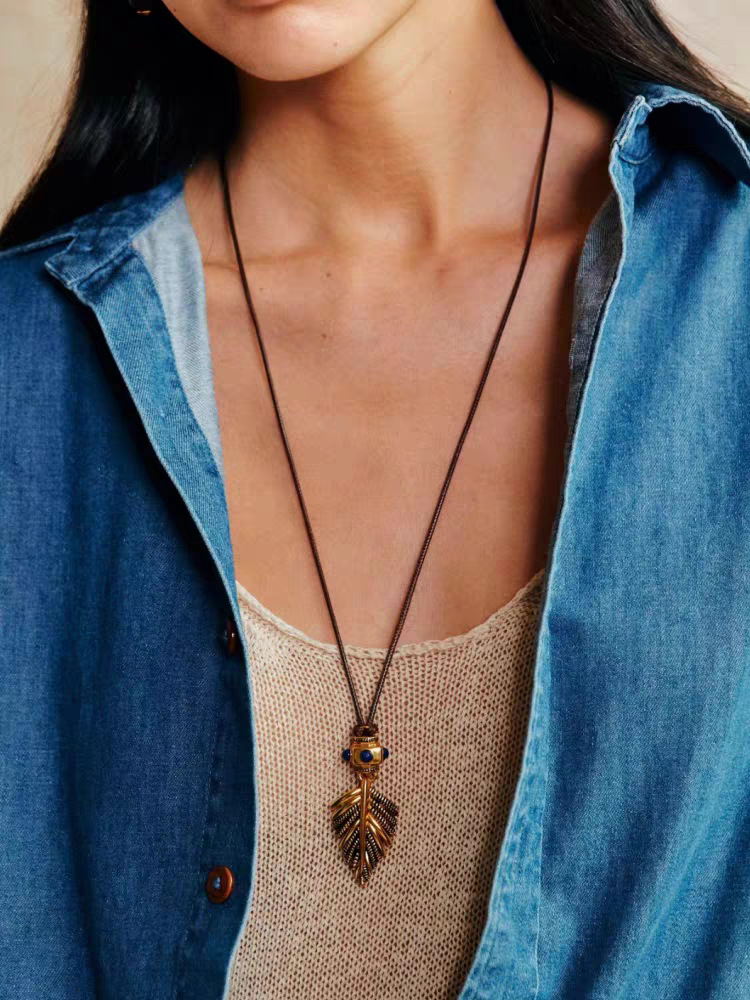 新款复古摇曳棕榈项链小众时尚简约高级感吊坠轻奢个性独特毛衣链