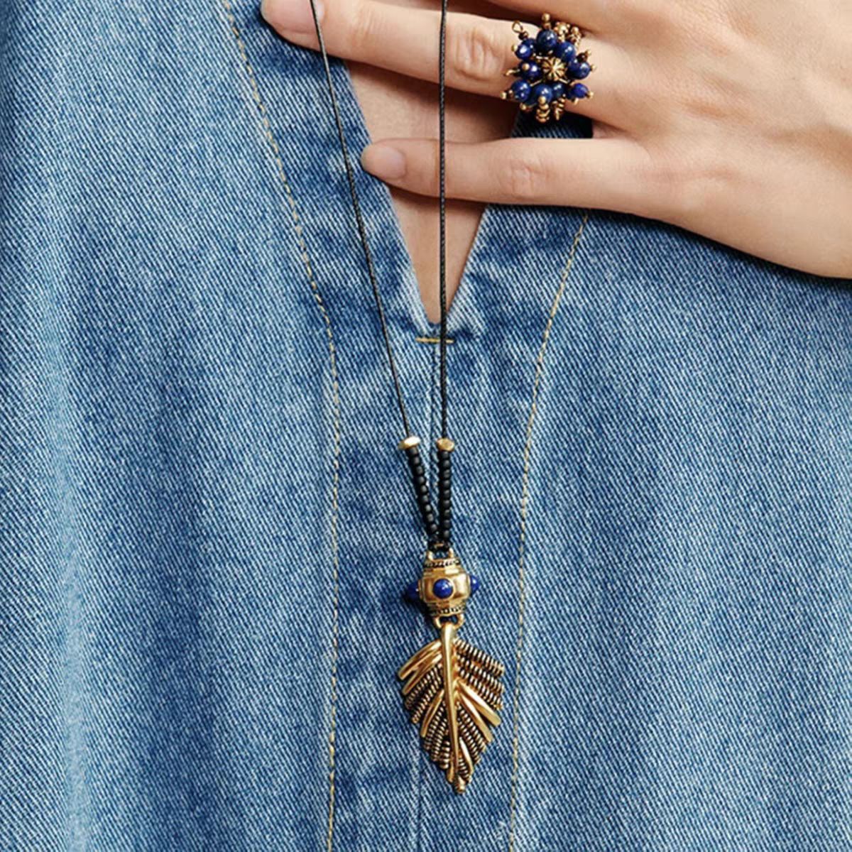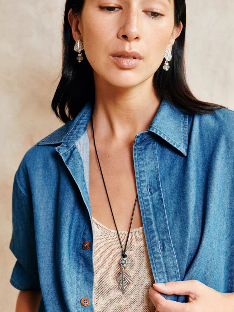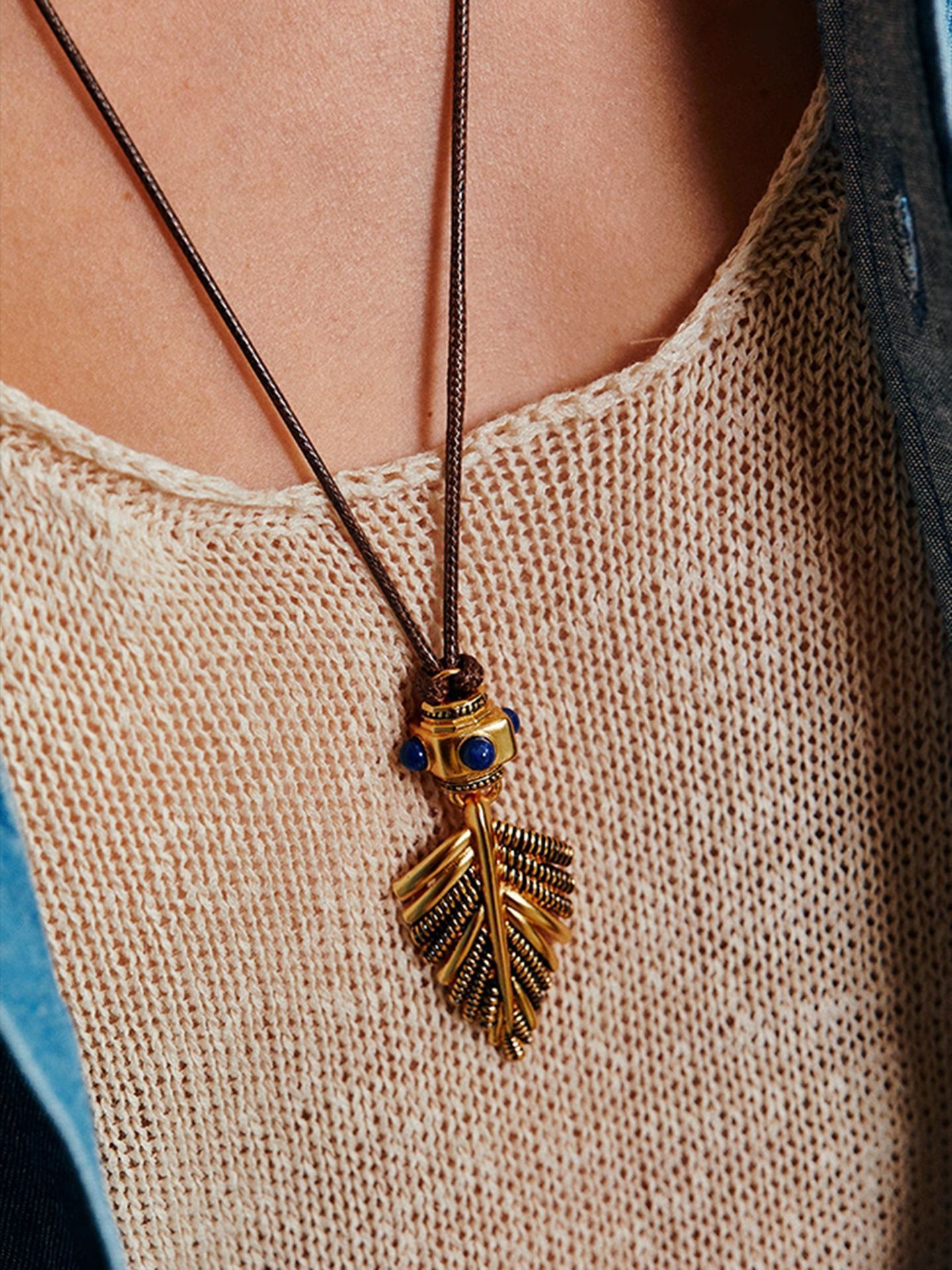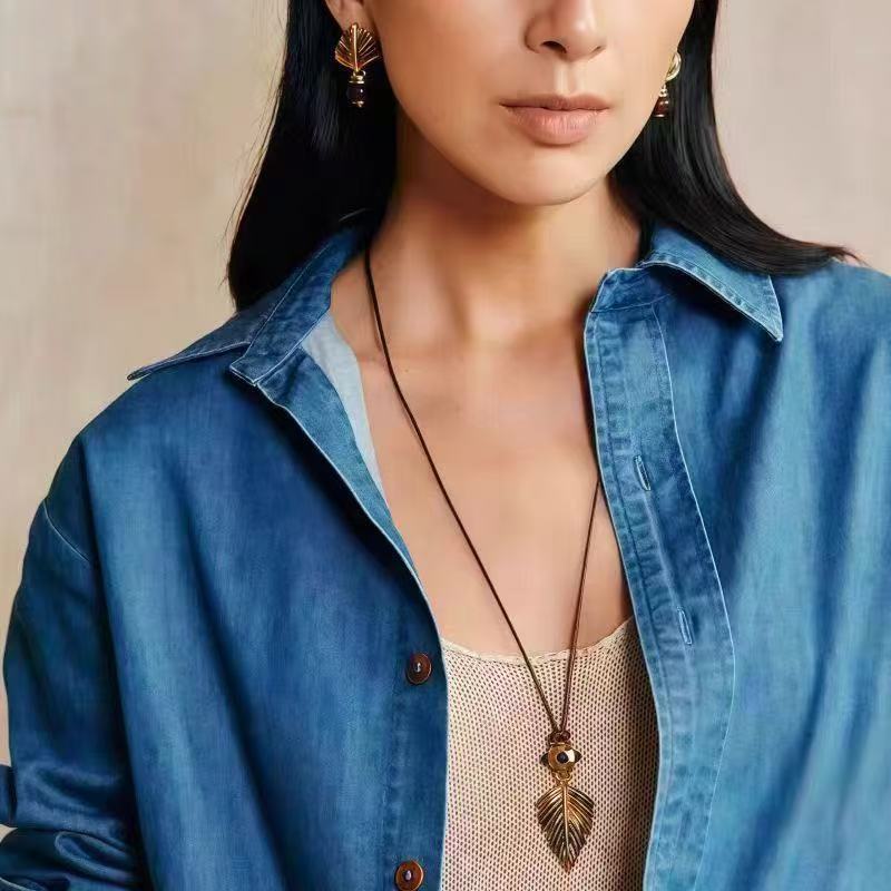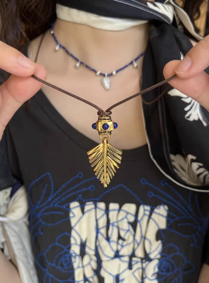新款复古摇曳棕榈项链小众时尚简约高级感吊坠轻奢个性独特毛衣链 投诉