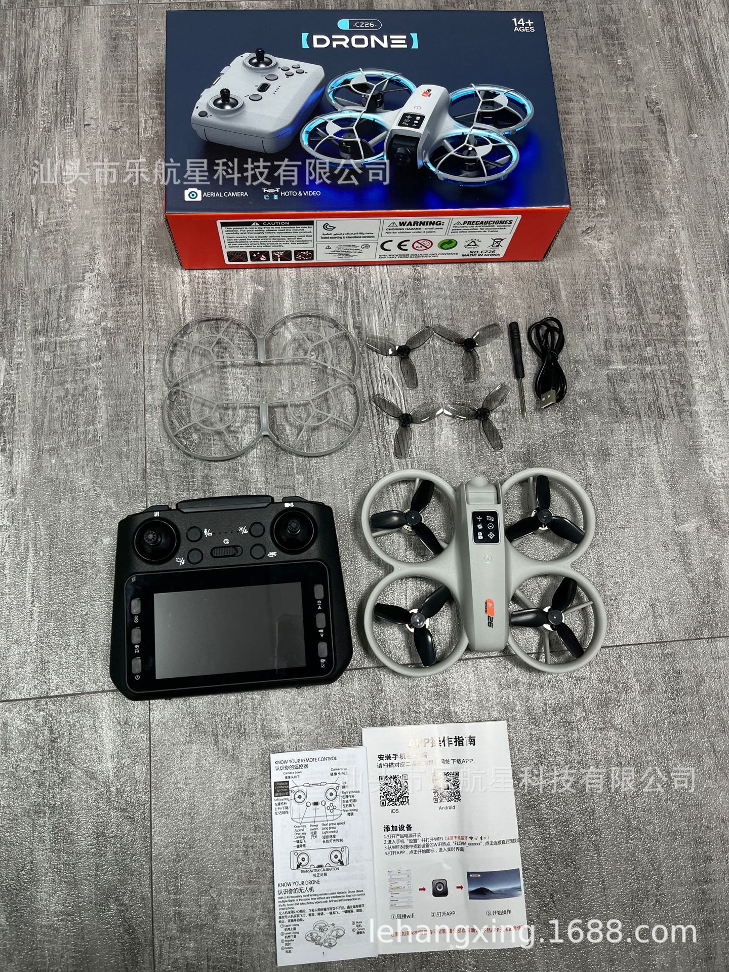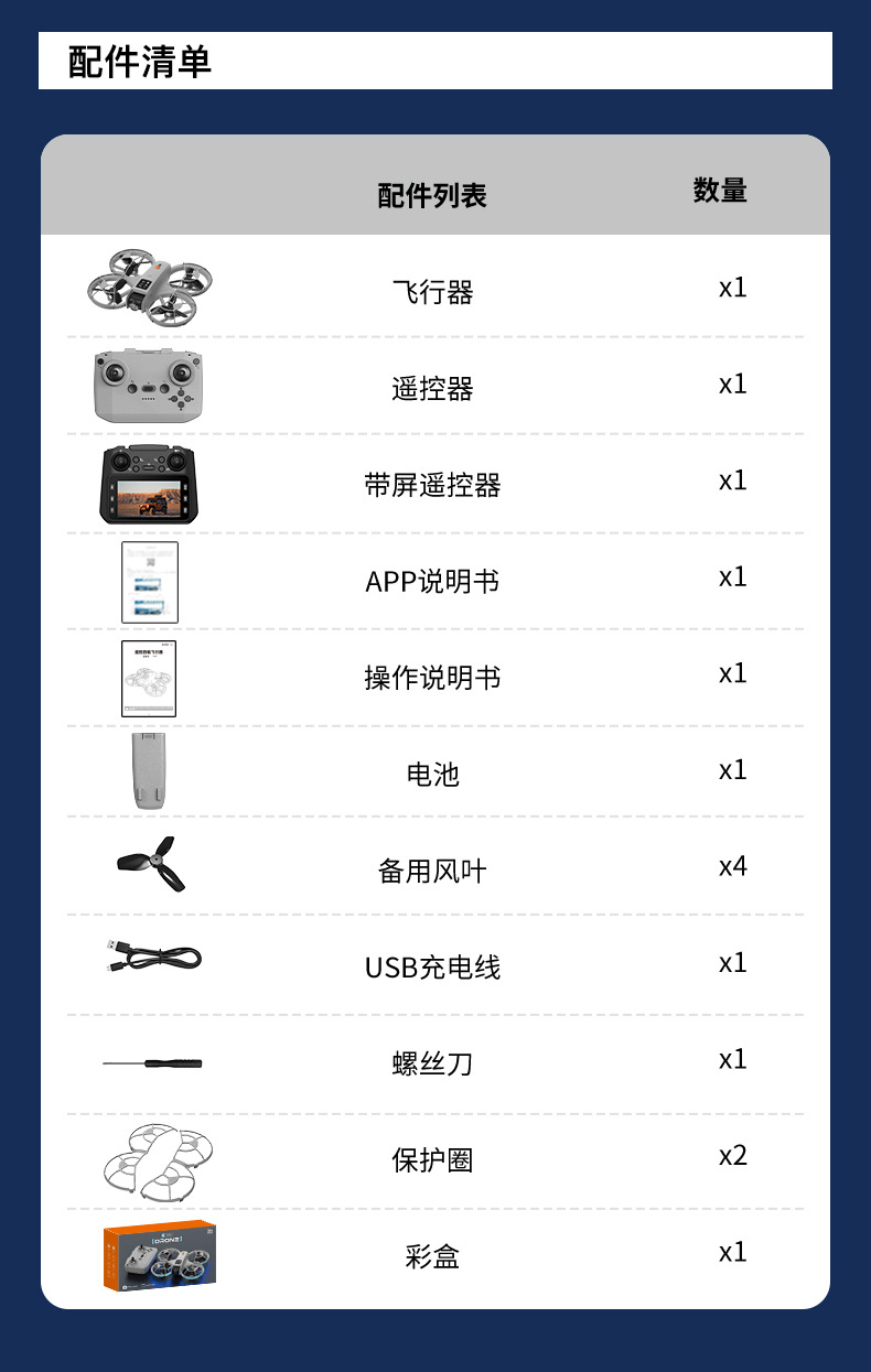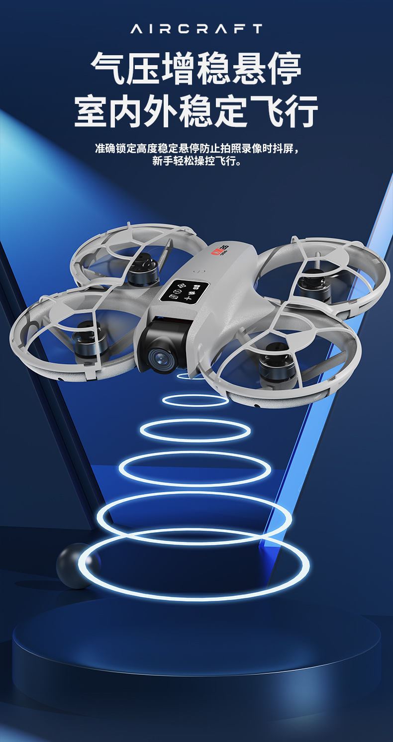 7、无人机自带WiFi信号、通过智能手机连接专用APP进行操控(一键起飞/ 一键降落/ 上升/下降/ 左/右转向/360°翻滚/无头模式/快慢档/拍照/录像/切换双摄像头/人脸识别自动拍照/重力感应/轨迹飞行/)