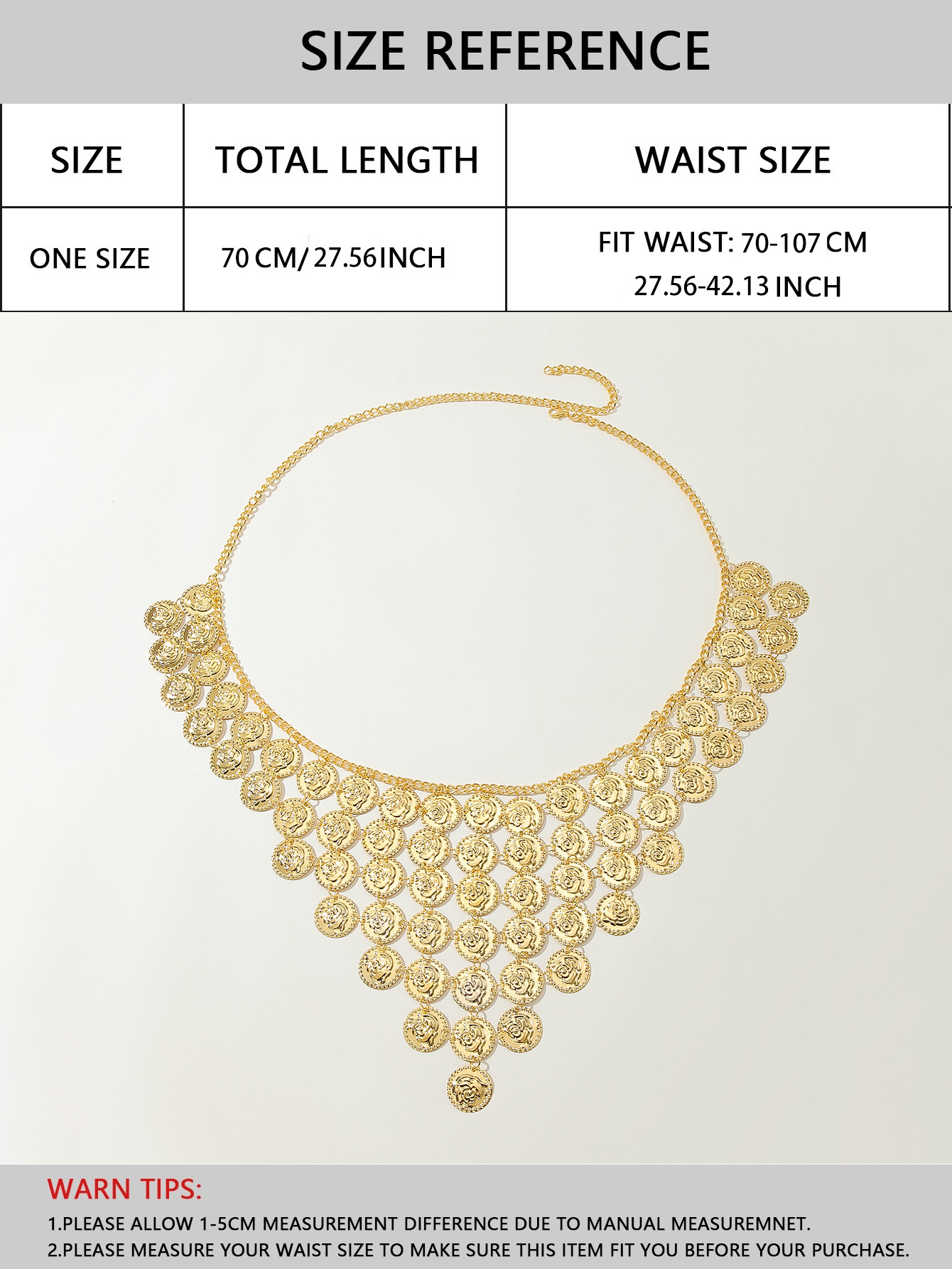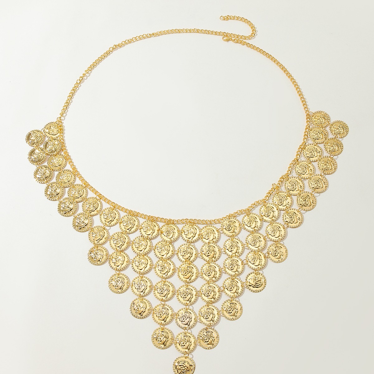 材质: 金属 产品类别: 腰链 腰带圈数: 多圈 长度(CM): 80-100cm 宽度: 咨询客服 风格: 百搭 货源类别: 现货 适用性别: 中性/男女均可 适用年龄段: 青年 颜色: 金色 包装: 咨询客服 是否外贸: 是 是否库存: 是 品牌: 自主品牌 货号: XY0955 适合季节: 夏季,冬季,春季,秋季 加工定制: 是 带扣元素: 花 上市年份/季节: 2024年夏季 主要下游平台: 咨询客服 重量: 0.25 kg/条