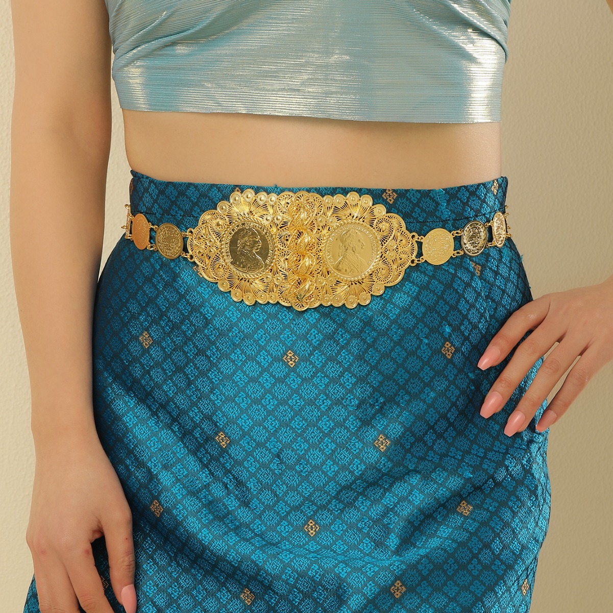 新款简约金属腰带图腾设计金色腰链古风汉服民族风复古身体链批发 English | 投诉