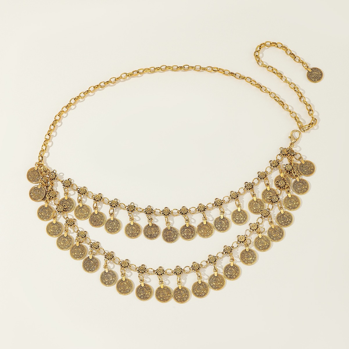 民族风金属腰链复古流苏钱币腰饰百搭细腰带配连衣裙子西服身体链