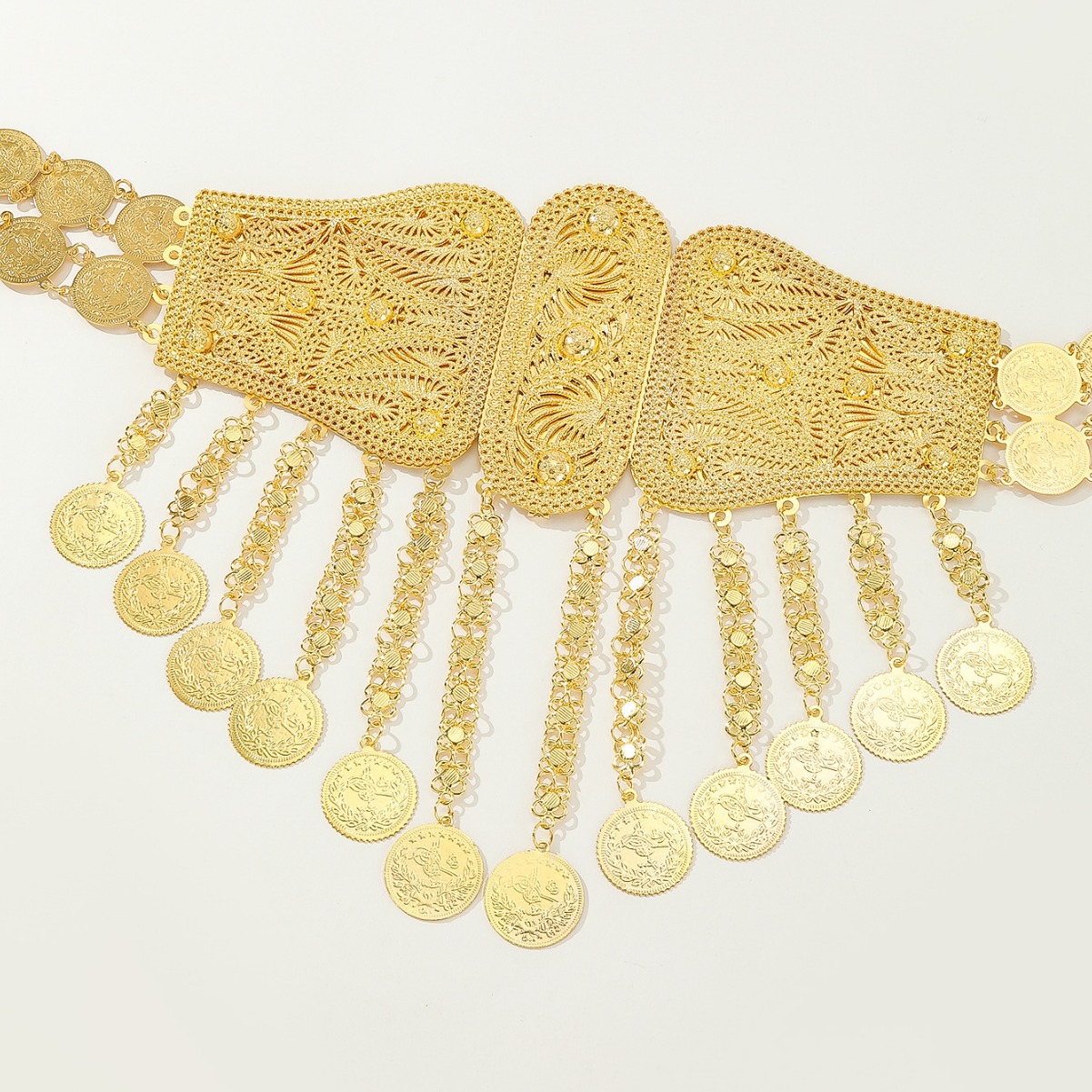 欧美镂空金属腰饰 异域风钱币流苏身体链 服装链条连衣裙裙子腰带 English | 投诉