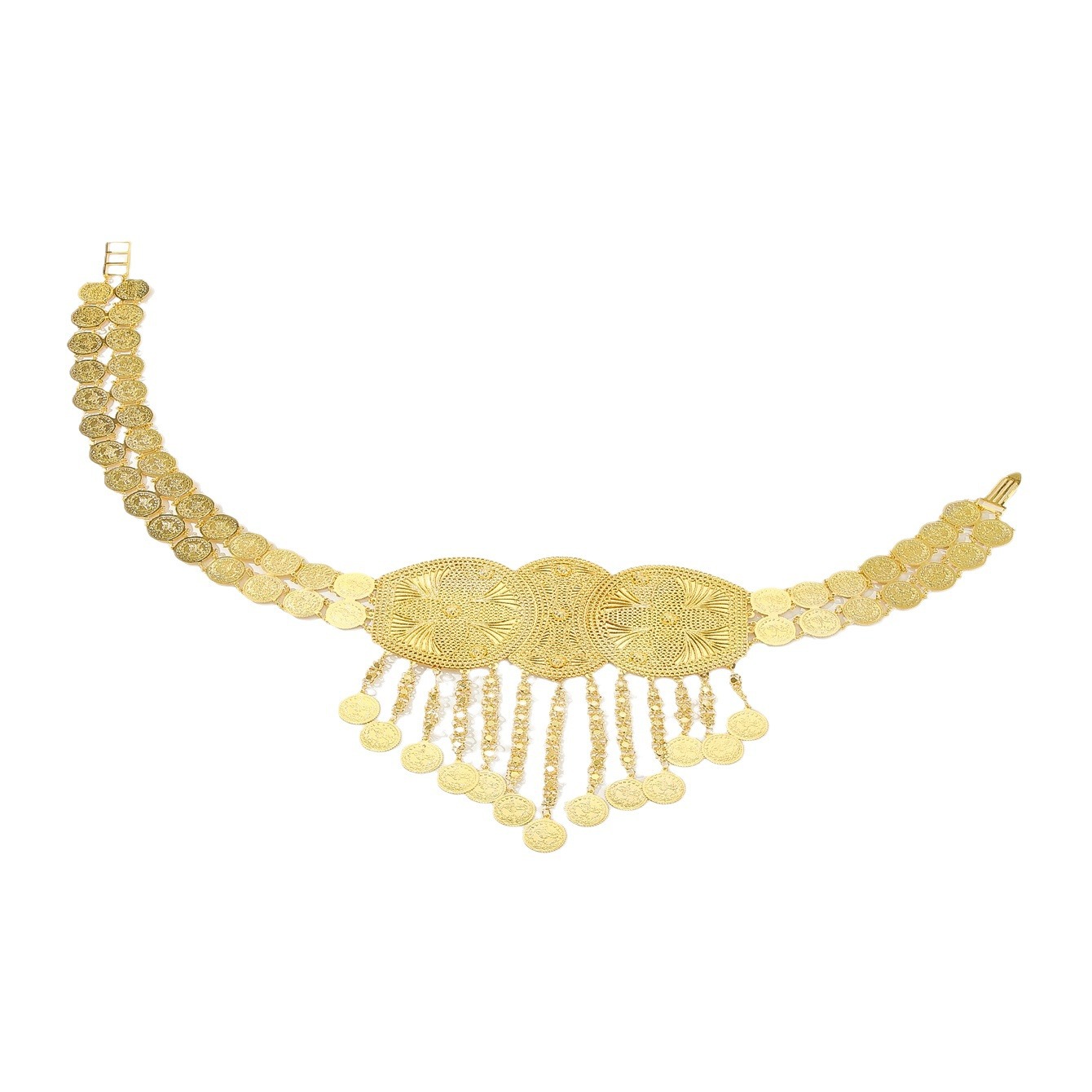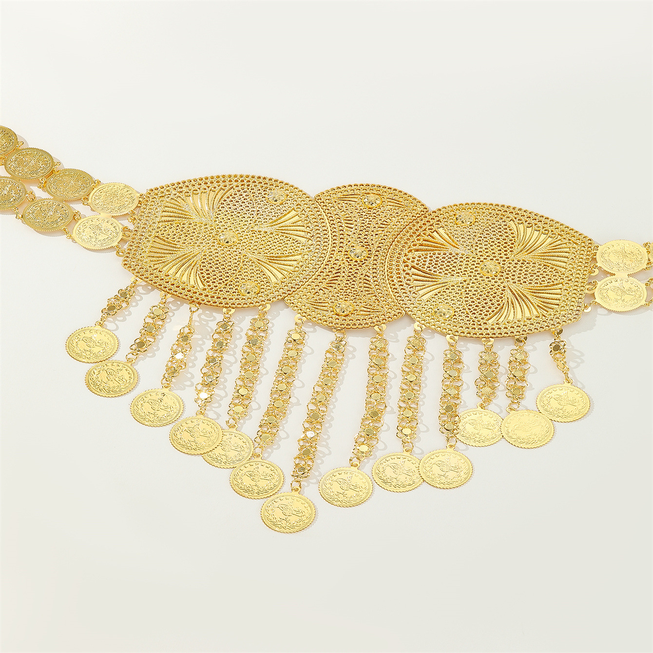 新款民族风金色流苏腰链配长裙晚宴礼服百搭重工不规则身体链批发 English | 投诉