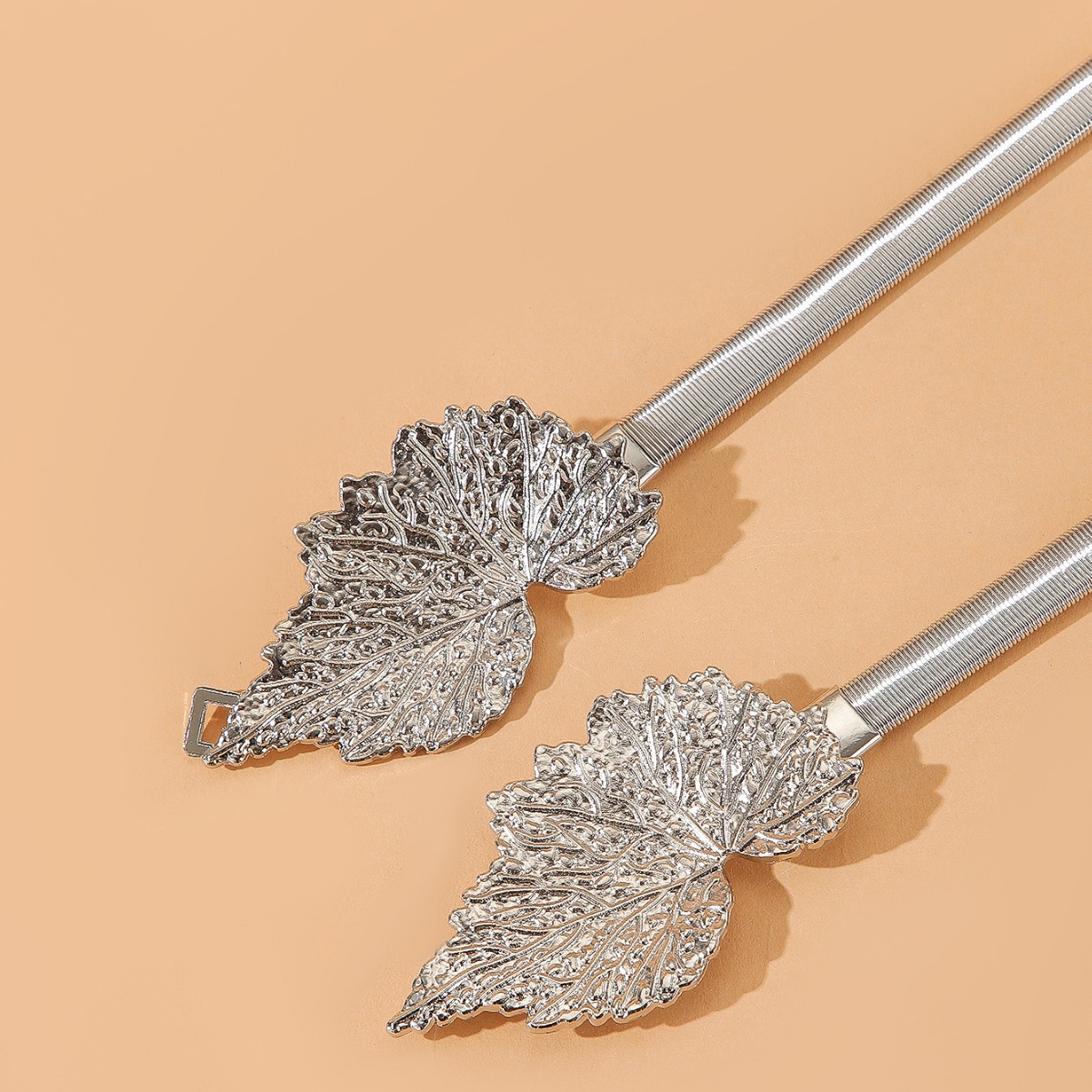 跨境弹力金属腰带银色腰带装饰连衣裙树叶时尚百搭衣服饰品细腰带
