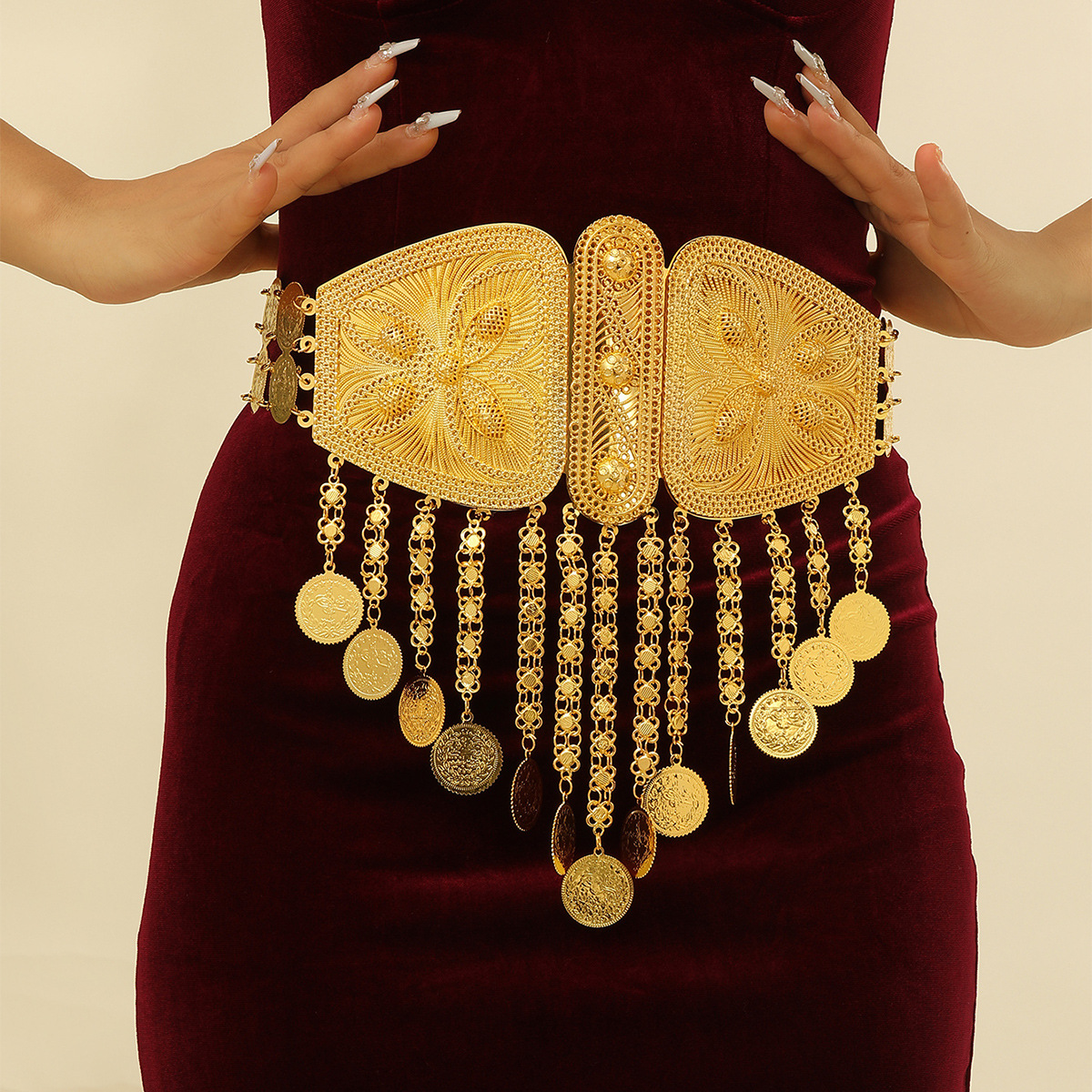 跨境金色腰链diy服装链条连衣裙裙子腰带身体链金属腰链工厂批发 English | 投诉